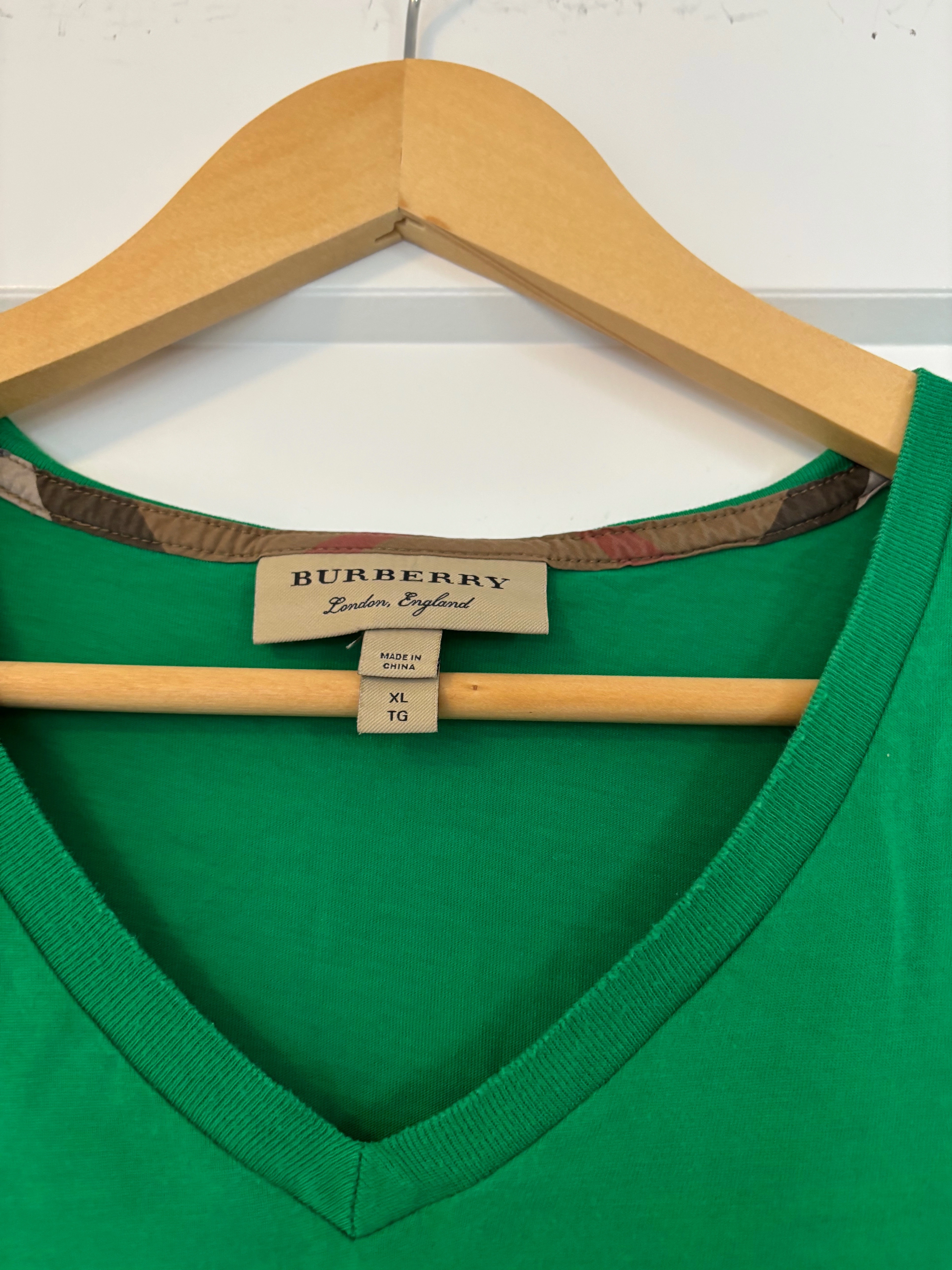 Classic Burberry green V-neck T-shirt in great condition. Tag size XL — please check measurements for best fit.