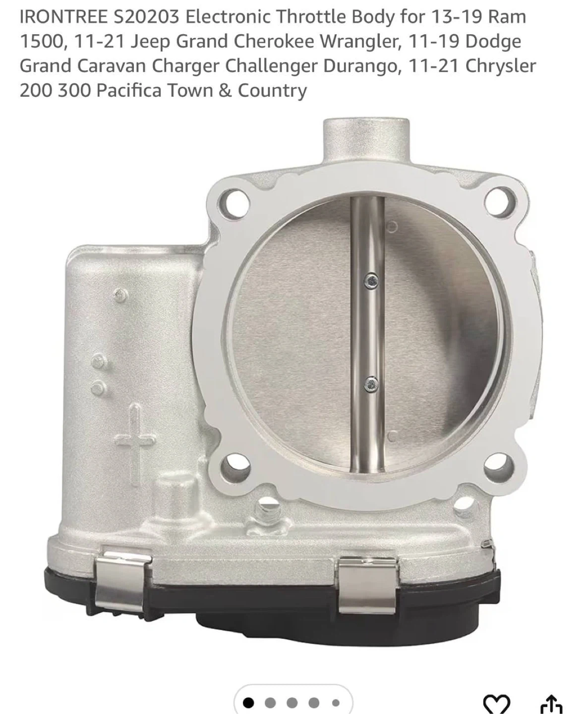 IRONTREE S20203 Electronic Throttle Body 3.6L V6 (Chrysler / Dodge / Jeep / Ram) – NEW ‼️FINAL SALE‼️ Brand new electronic throttle body. Never installed. Ready for replacement. Part Number: S20203 OEM Cross Reference: 5184349AB / 5184349AC / 5184349AE / 5184349AF 0280750570 Fits 3.6L V6 models including: • Ram 1500 (2013–2019) • Jeep Grand Cherokee (2011–2021) • Jeep Wrangler (2012–2018) • Dodge Charger / Challenger / Durango (2011–2021) • Chrysler 200 / 300 / Pacifica / Town & Country And other 3.6L V6 applications Please verify compatibility with your VIN before purchase. 💲 Price: $80 Pickup preferred. See my other listings for more auto parts 🔧 ‼️FINAL SALE‼️