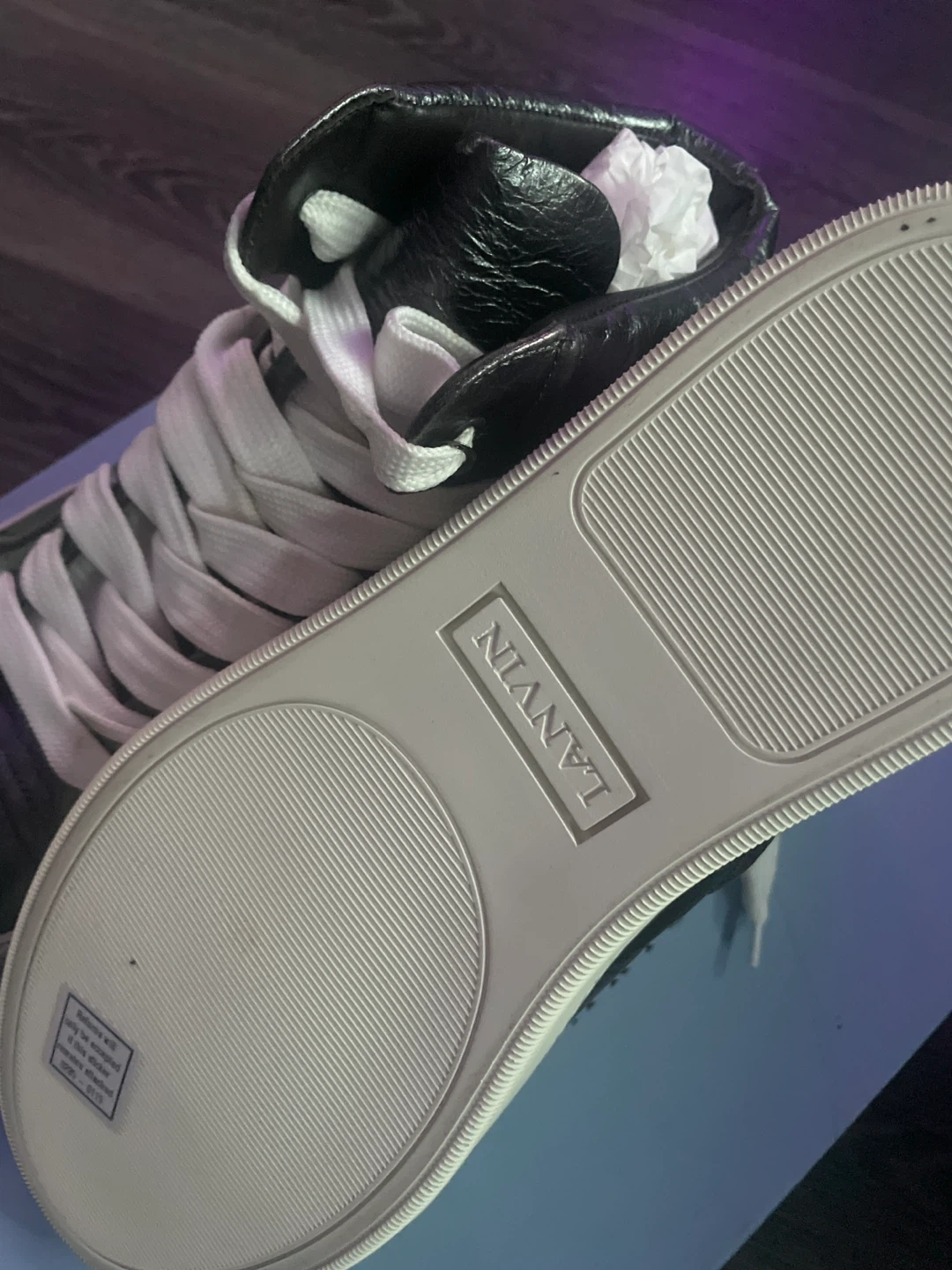 Selling a pair of Lanvin Paris high-top sneakers. They are in great condition and come with the original box. Perfect for adding a touch of luxury to your everyday style!