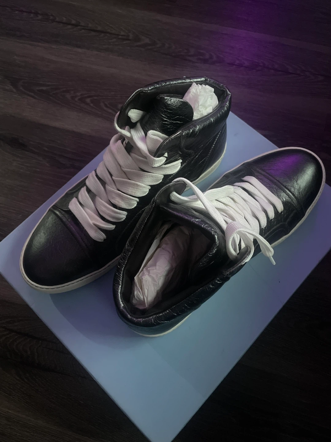 Selling a pair of Lanvin Paris high-top sneakers. They are in great condition and come with the original box. Perfect for adding a touch of luxury to your everyday style!