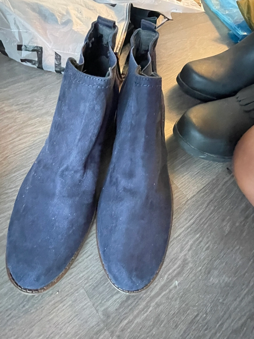 Here are some Insolia Flex ankle boots in a lovely blue suede! They're a size 38 & 39 and ready for a new home. They have a nice, comfortable sole.