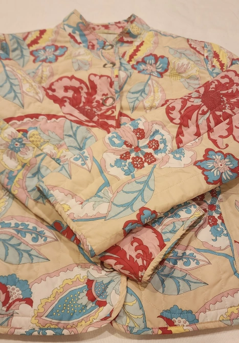 Escada sport Floral print jacket with silver buttons and quilted lining.