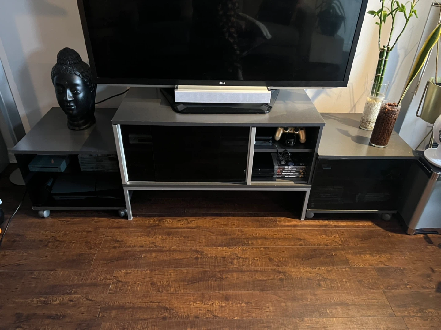 Buy & SellTV Stand with StorageTV Stand with Storage$1403 seperate interchangeable units Dark Grey and black Several shelves Small units have wheels Tiny nick on smaller table $200.00ConditionGoodWHERE TO MEETCheck LocationView MapSELLERInaDownsview181 review0 chats·0 favorites·111 viewsSEND CHAT TO SELLERHi Ina! I’m interested in your listing.Hi Ina! I’m interested in your listing.Get the Karrot app to chatSign In to chat
