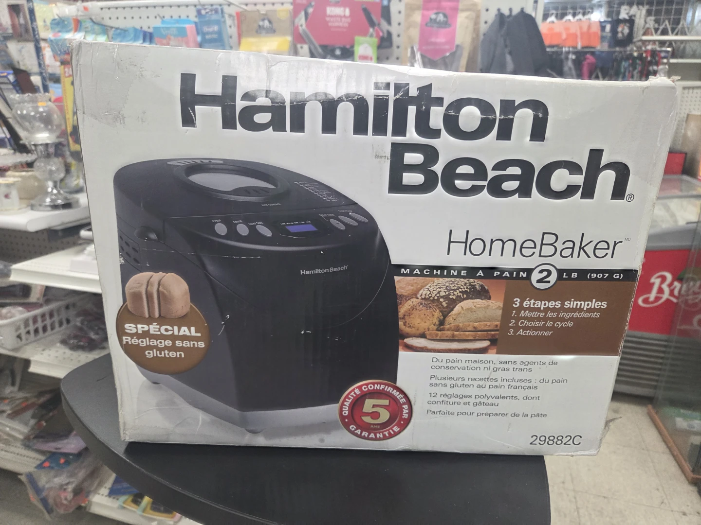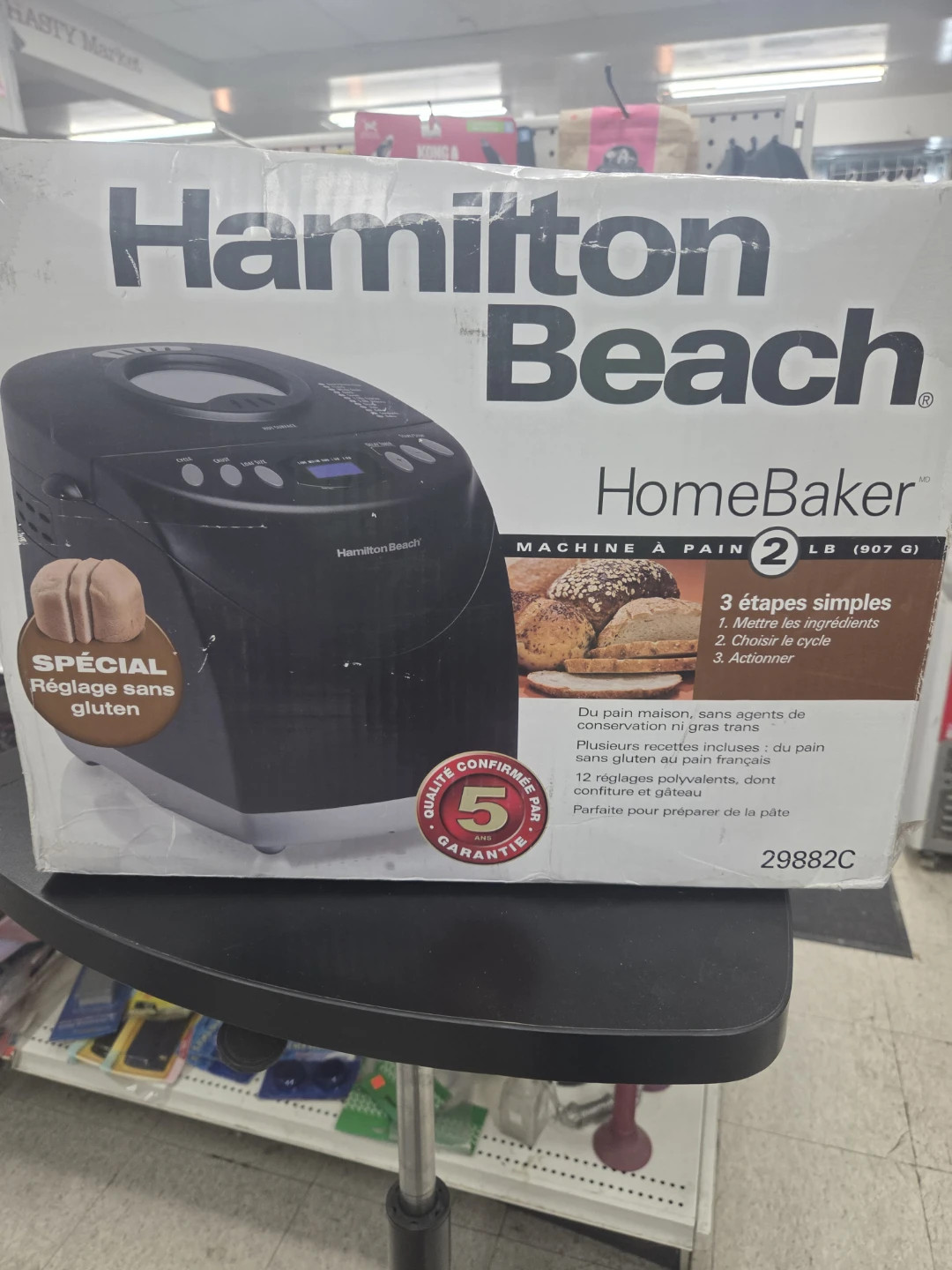 Selling a Hamilton Beach HomeBaker bread maker. It can make a 2 lb loaf. The box is included, and it has a special gluten-free setting. It also has a 5-year quality guarantee!