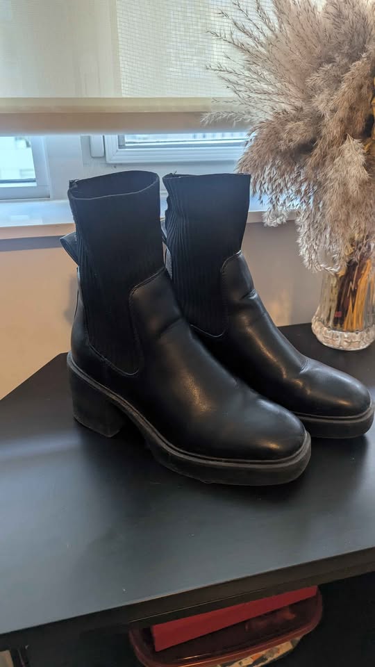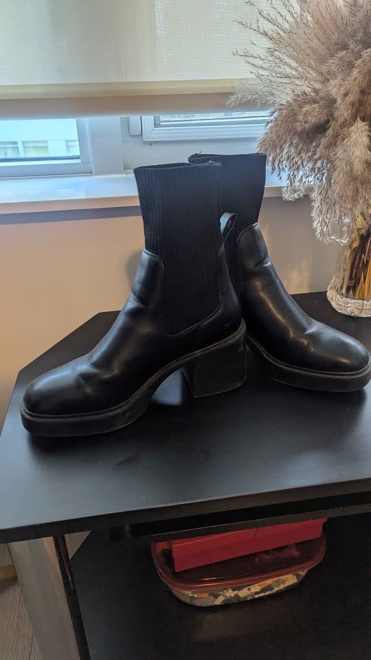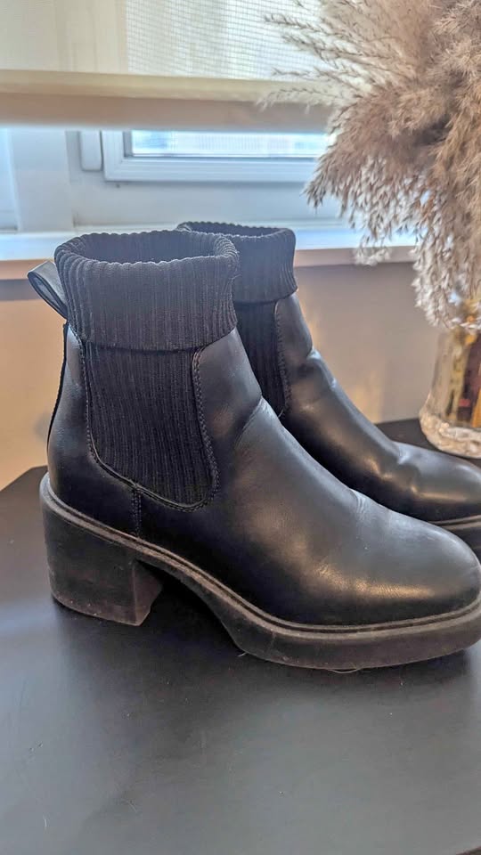 Black chunky heel boots