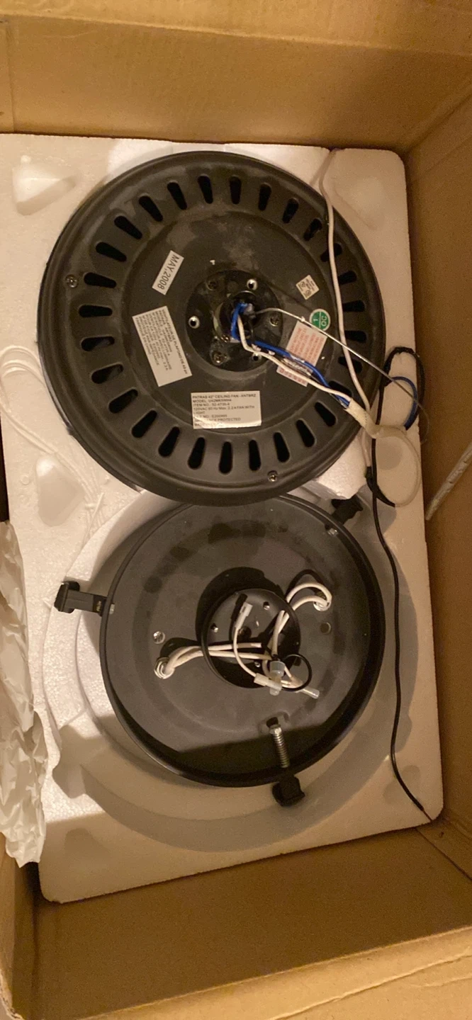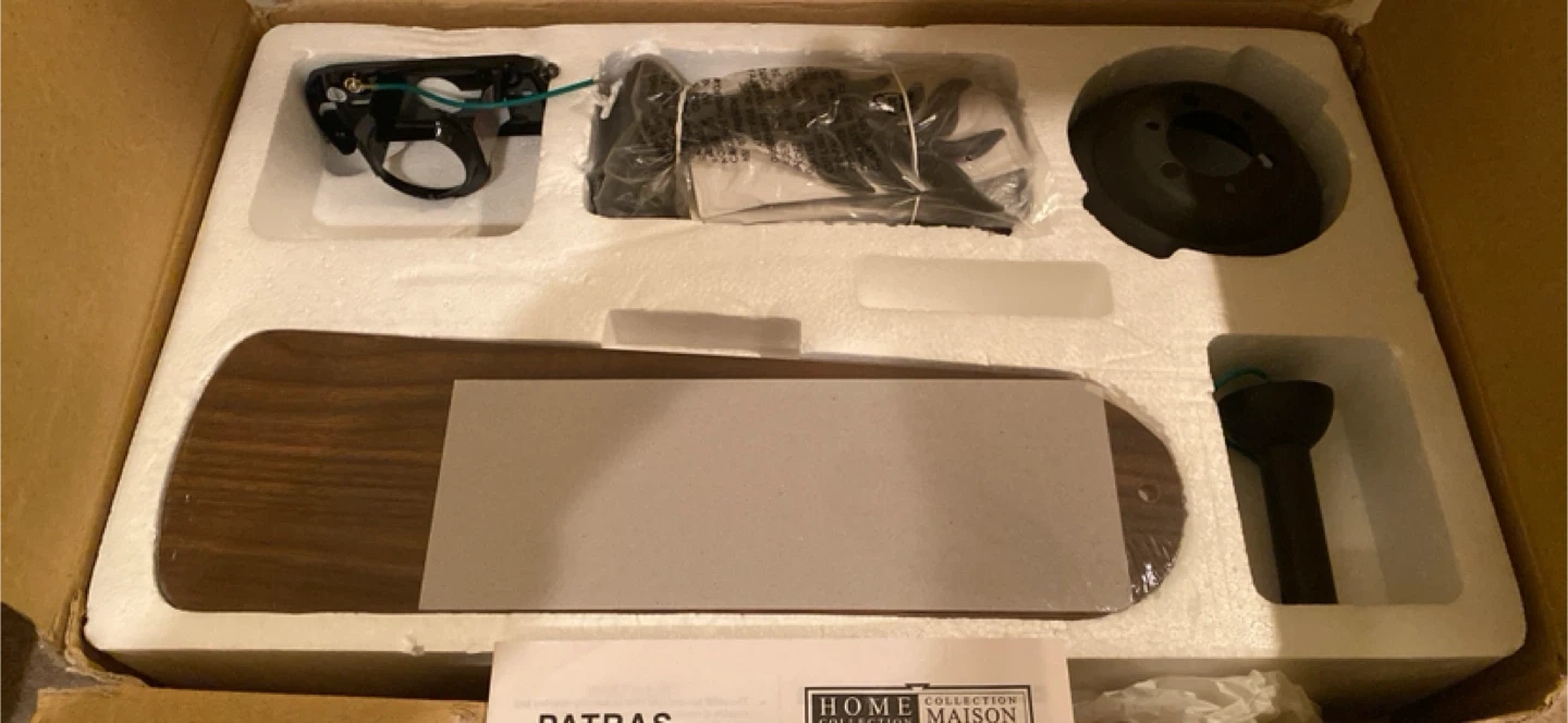 This is a Home Maison Patras ceiling fan. It's a 42-inch model. Includes all necessary components for installation. Unused, new still in box