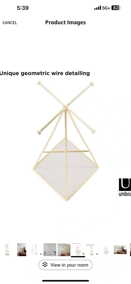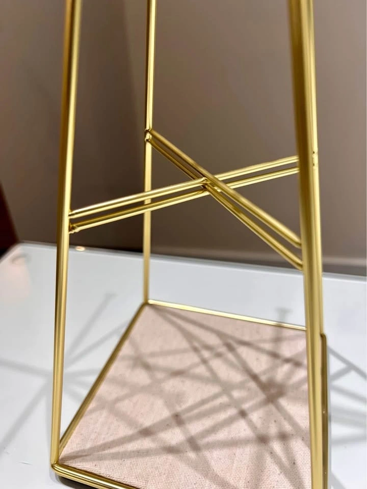 Elegant jewelry stand with a small footprint. Beautiful metallic gold finish. Great for organizing necklaces, earrings, rings and bracelets. Extra storage space at the bottom.