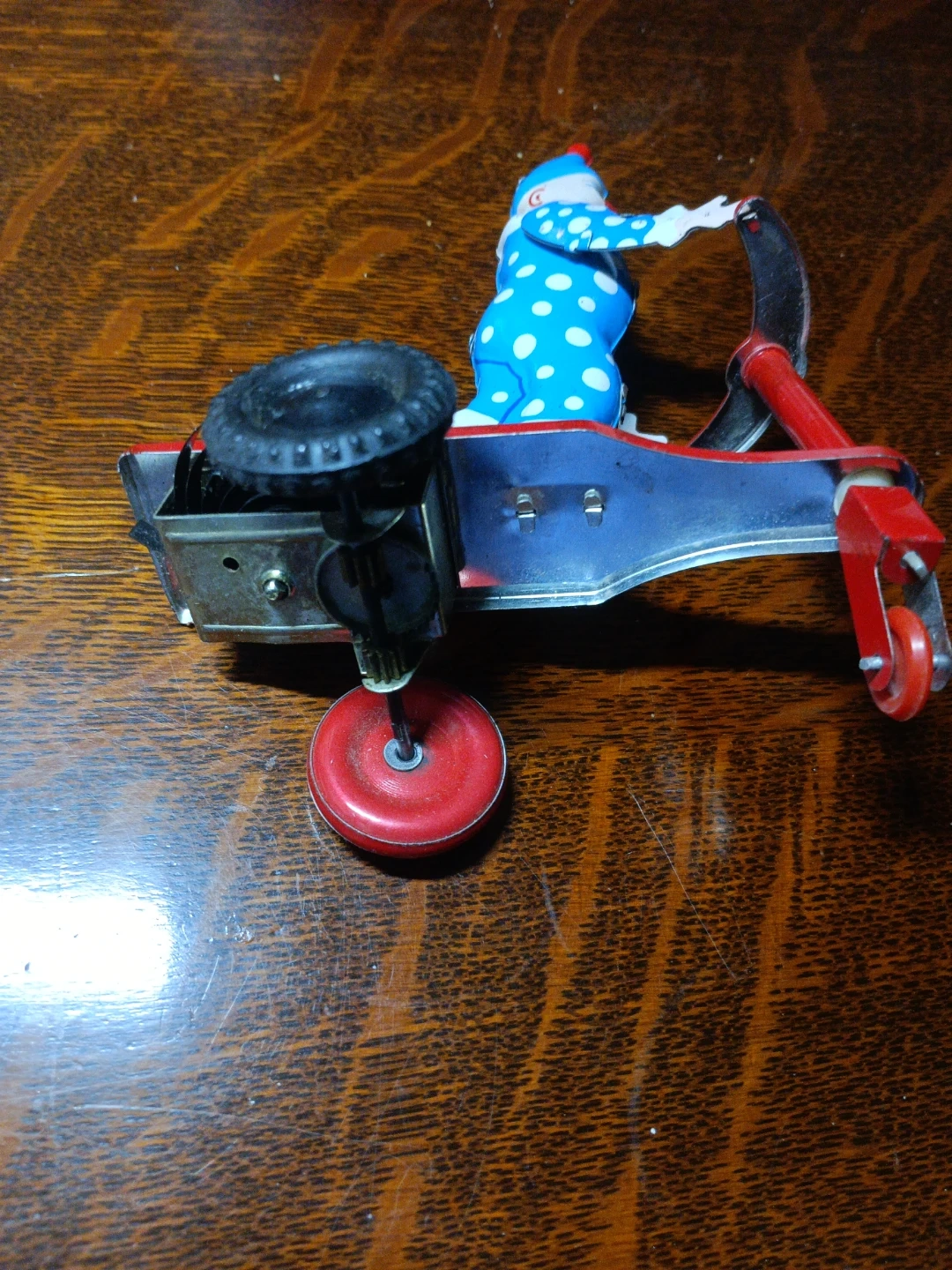 Vintage Tin Wind-Up Clown on Scooter Toy