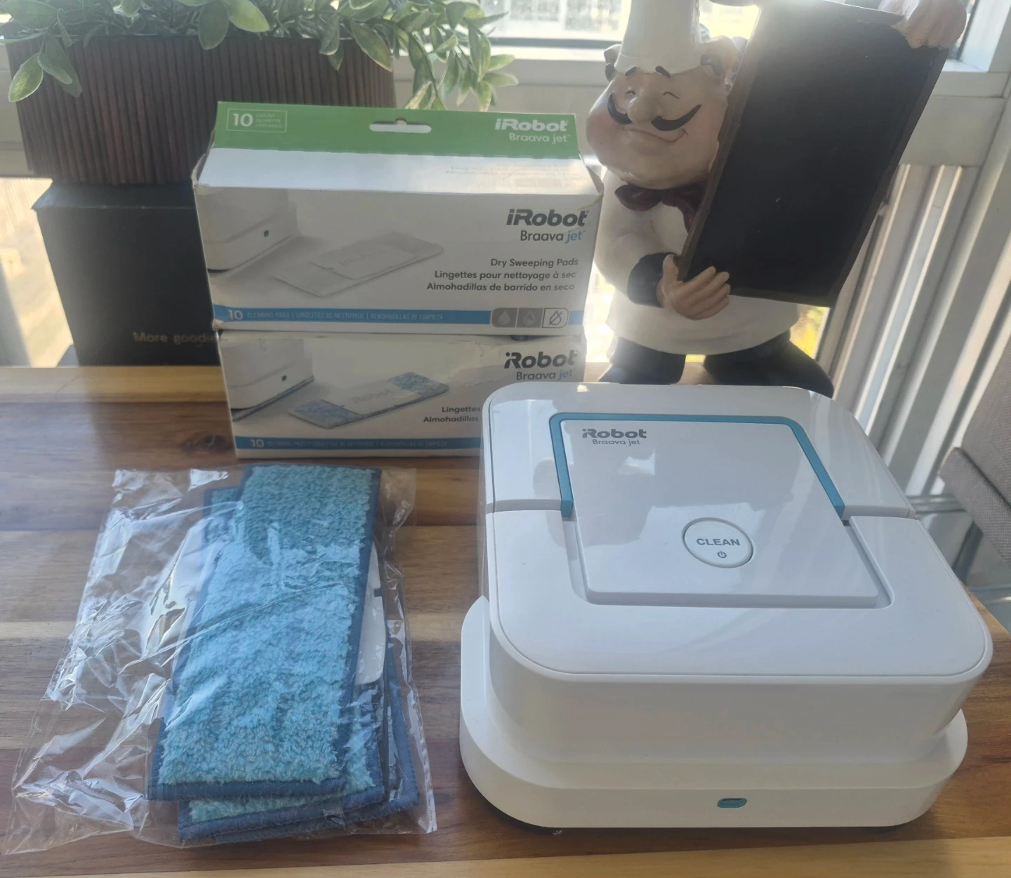 This iRobot Braava Jet is a handy mopping robot. It comes with 10 dry sweeping pads. Perfect for keeping your floors clean!