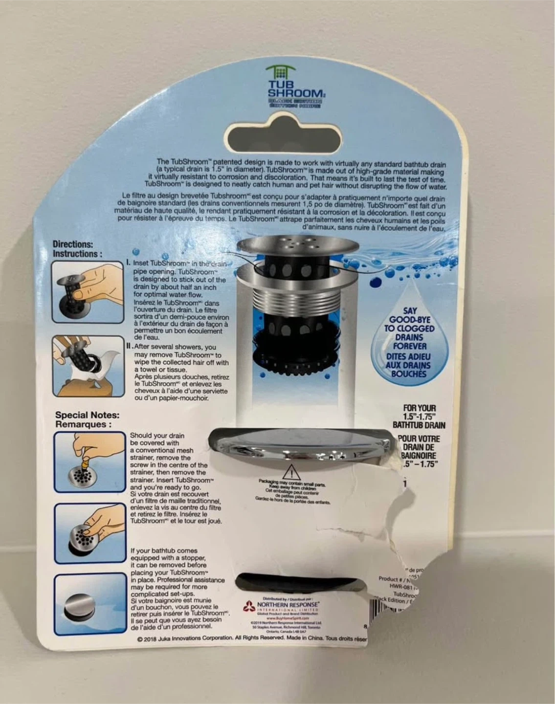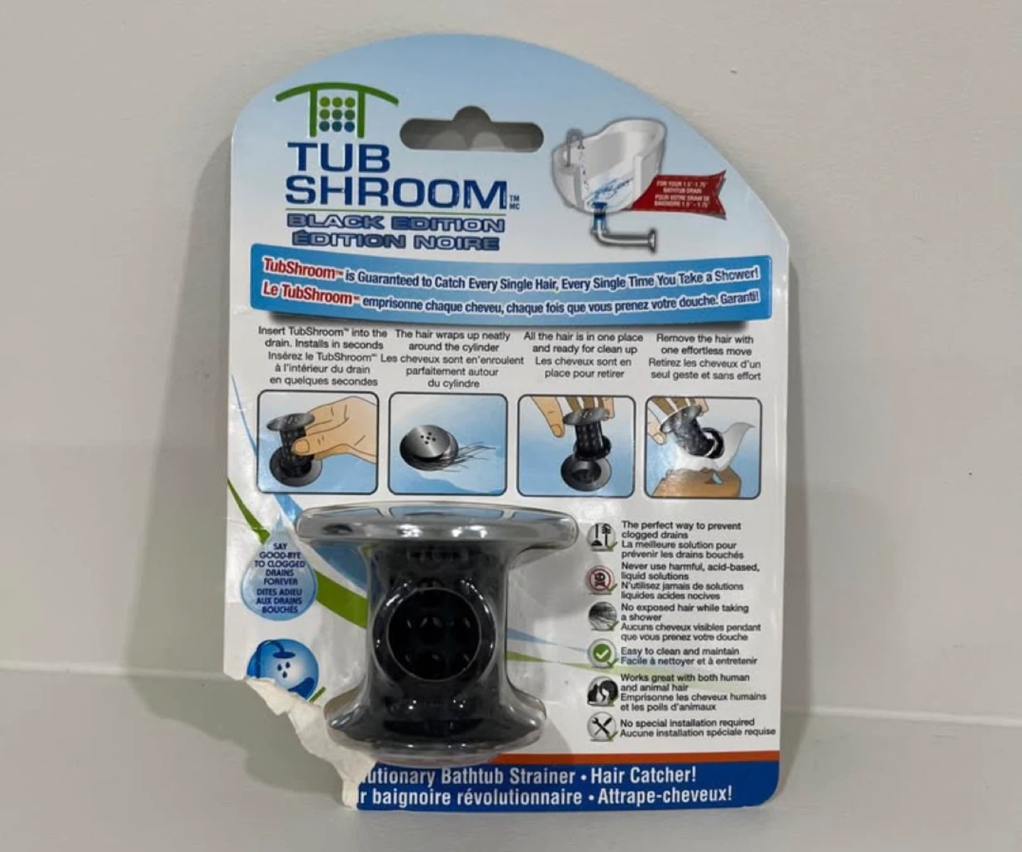 This TubShroom is a revolutionary bathtub drain hair catcher designed to prevent clogged drains. It's made of high-quality, durable material and works with any standard 1.5"-1.75" bathtub drain. Easy to clean and maintain, it works great with both human and pet hair.