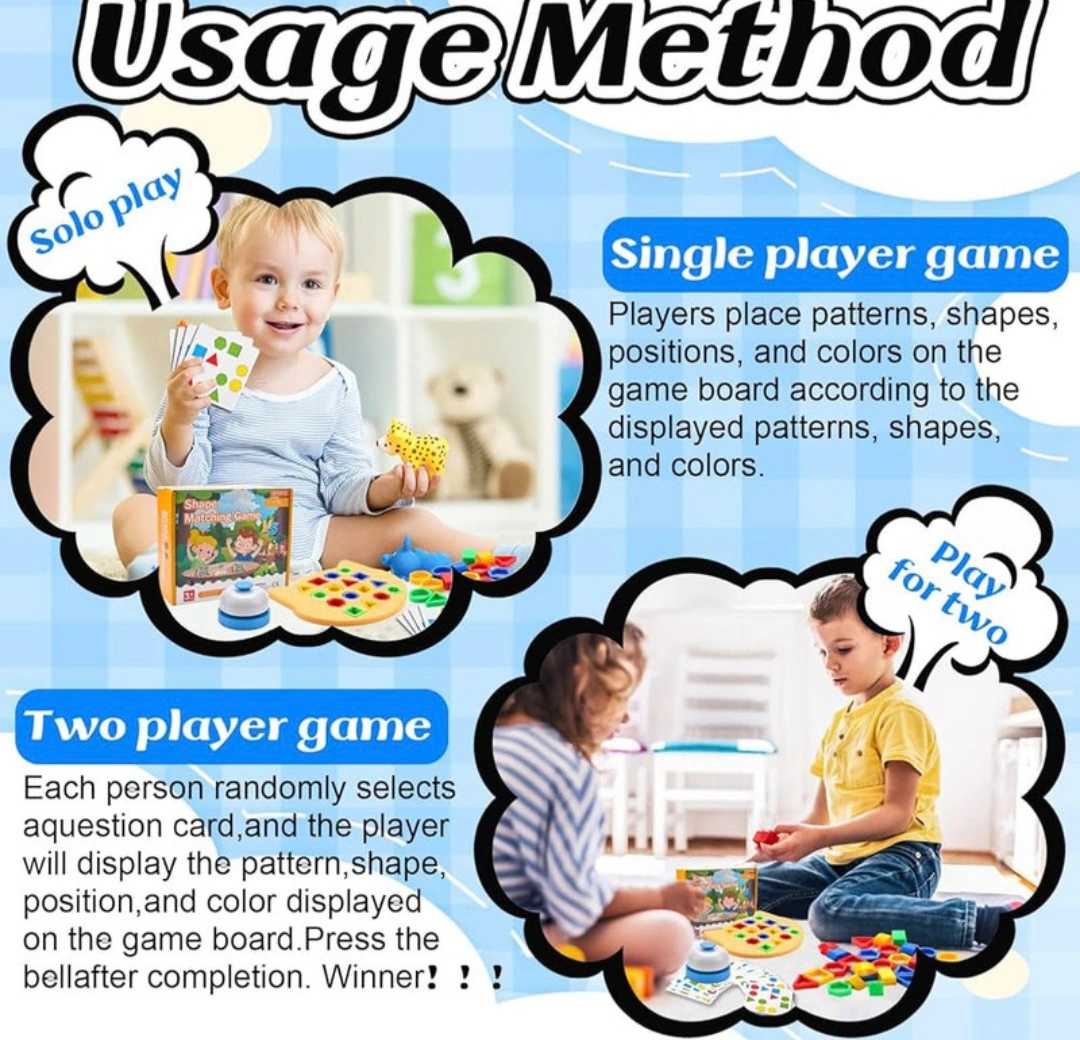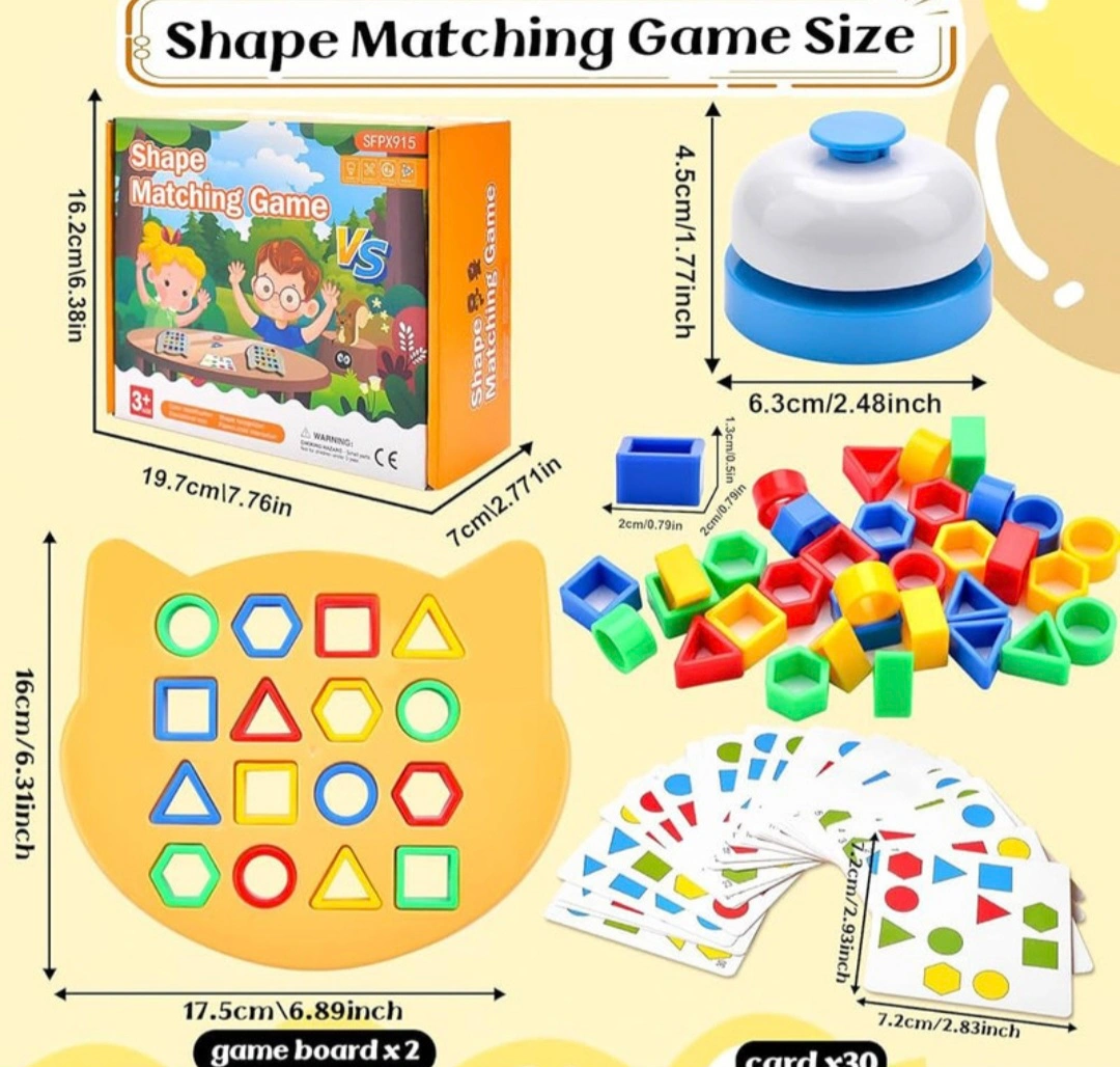 This Shape Matching Game for Children is a fantastic educational toy designed to enhance shape and colour recognition. Perfect for young learners, this set includes colourful shapes, matching boards, and even a bell to celebrate successful matches. This game is brand new, ensuring top quality and hygiene for your little one.