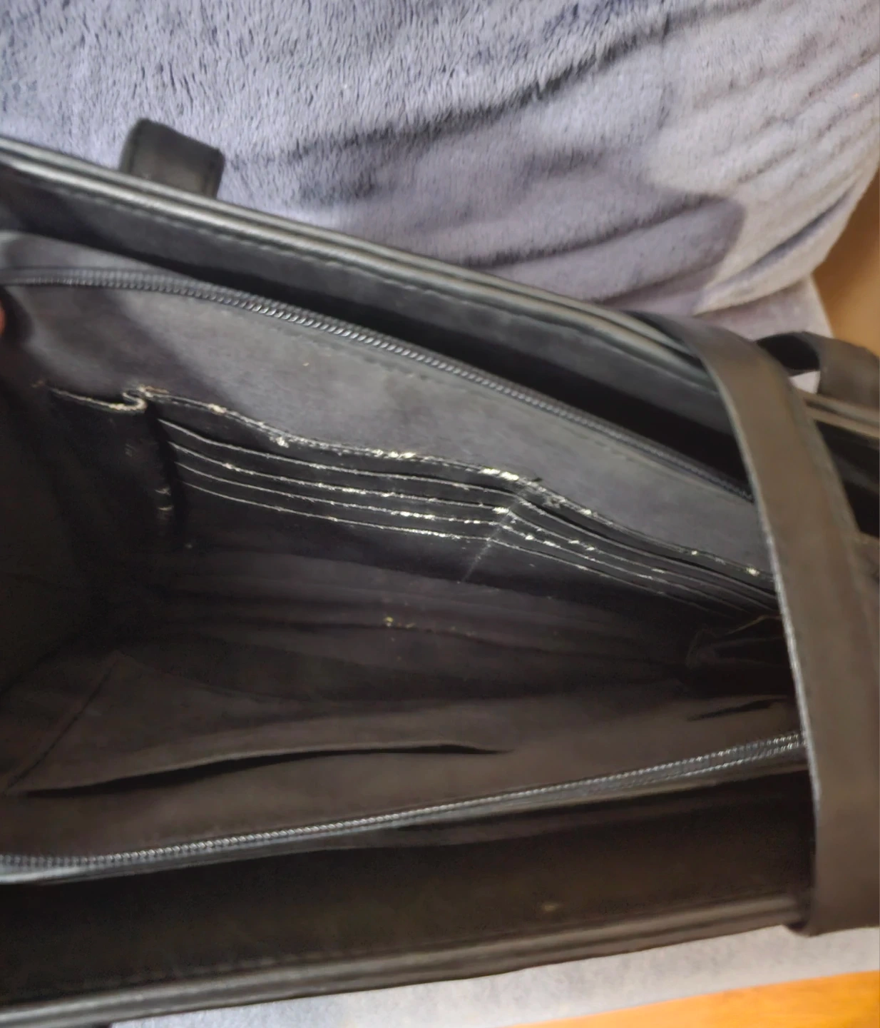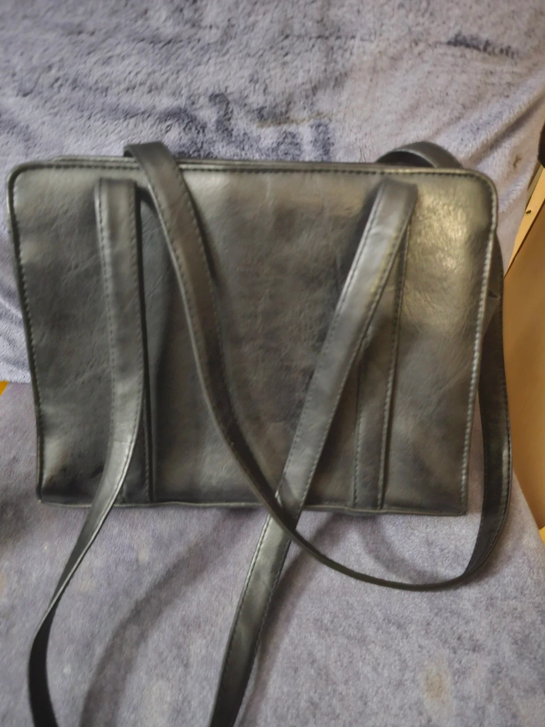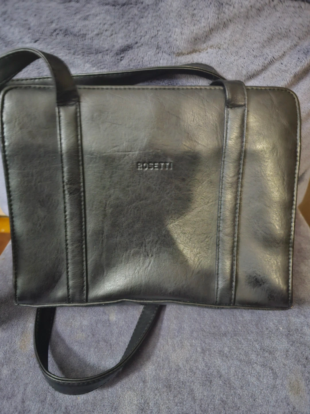 Classic black handbag from Rosetti. It's made of faux leather and features multiple interior pockets. Interior lining shows some wear. A simple, practical purse for everyday use.