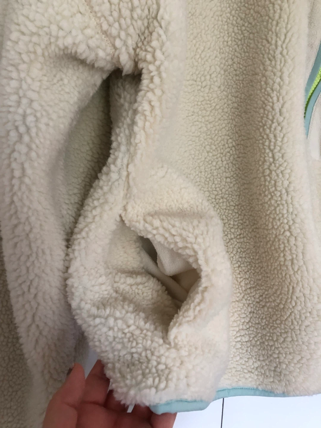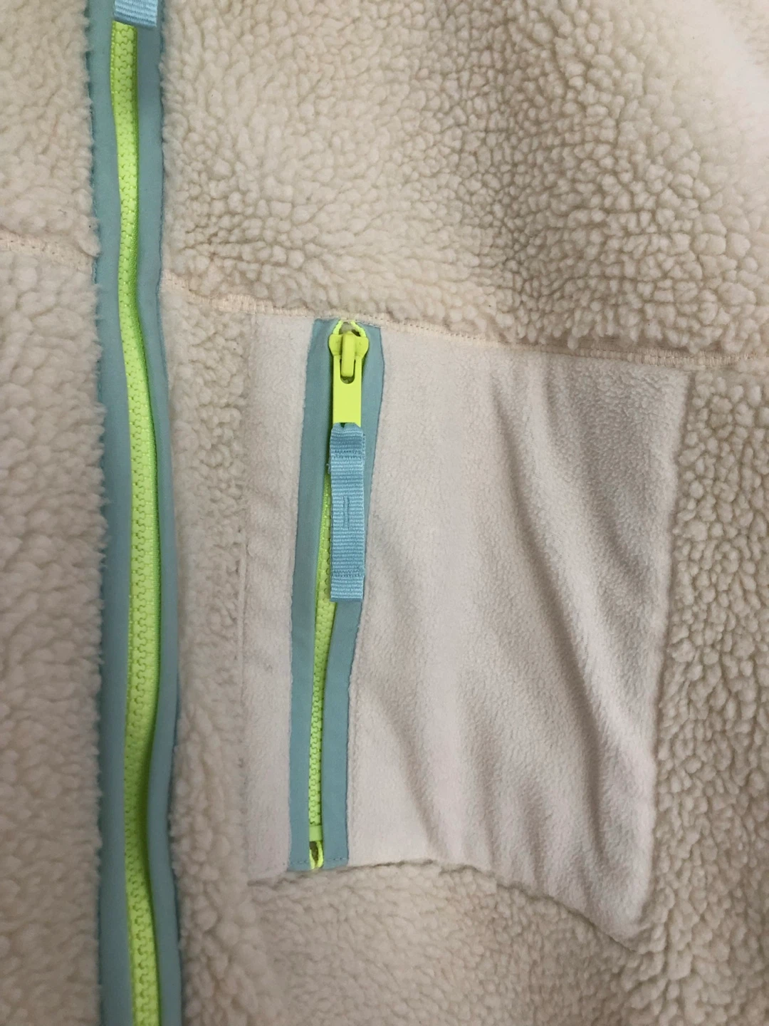It's a size XL and features a soft, plush sherpa material. Perfect for staying warm and stylish!