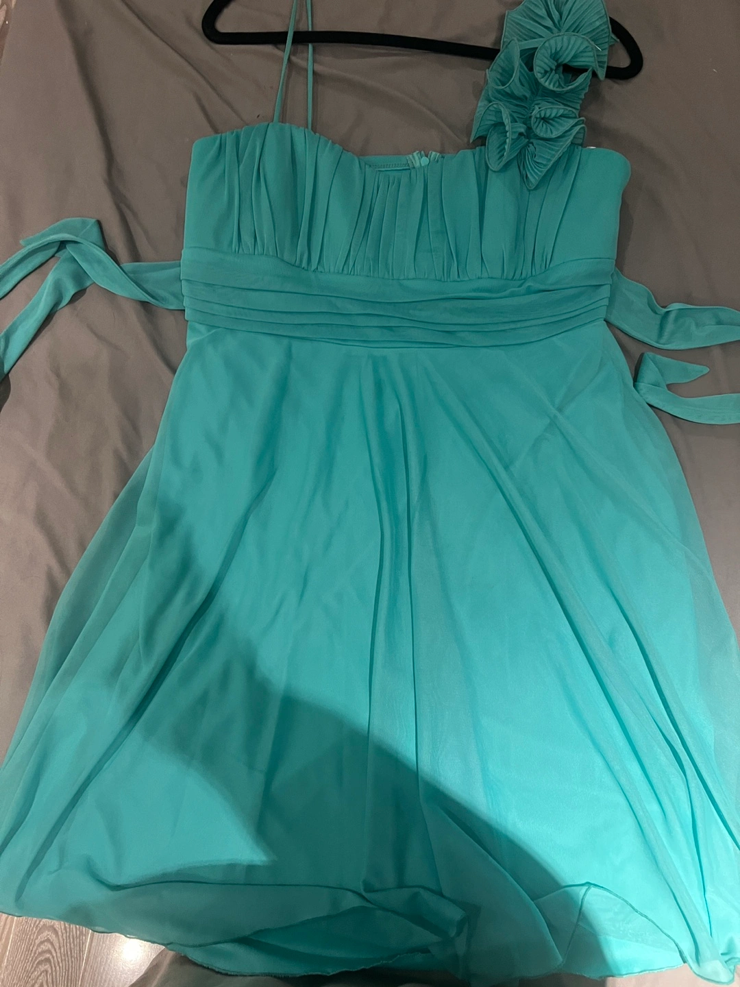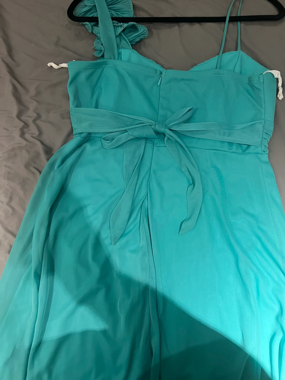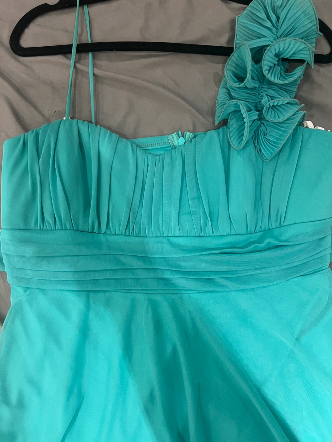 Teal One-Shoulder Chiffon Dress Size L (G)