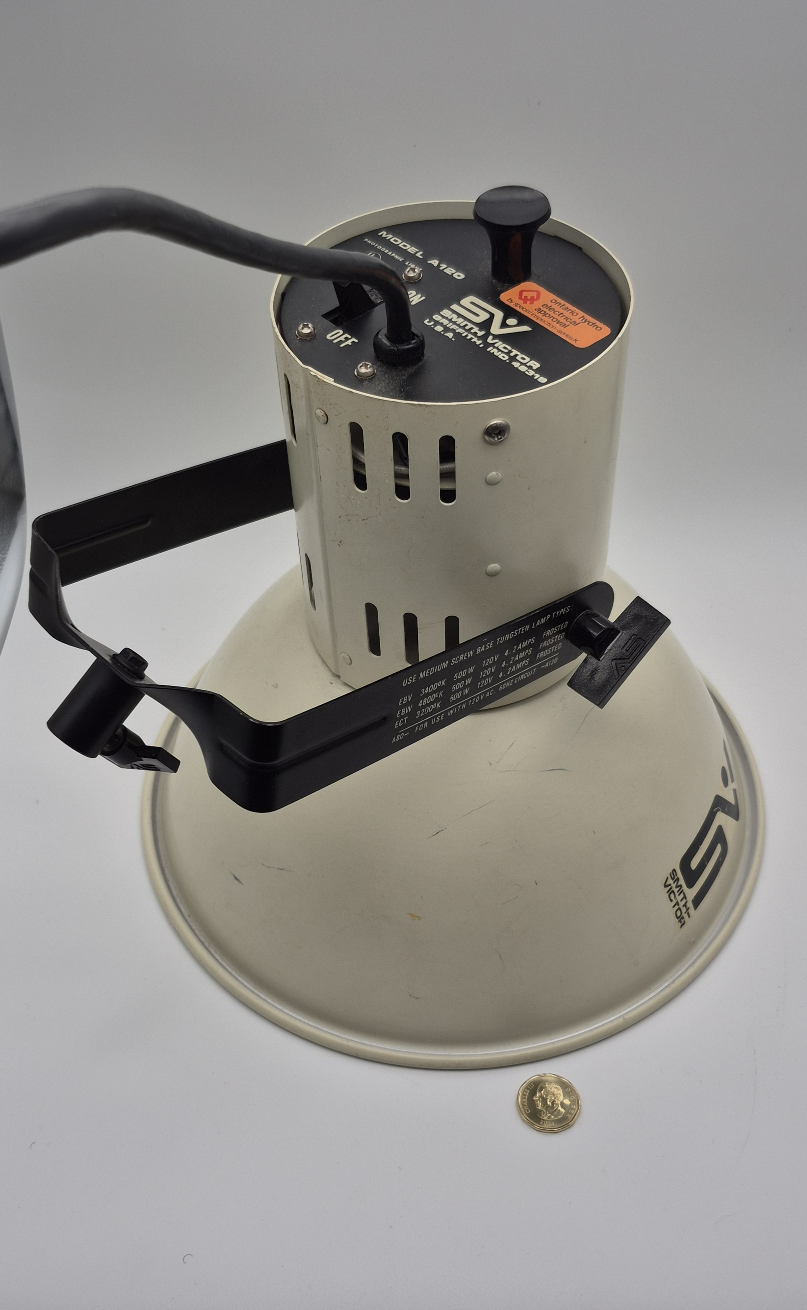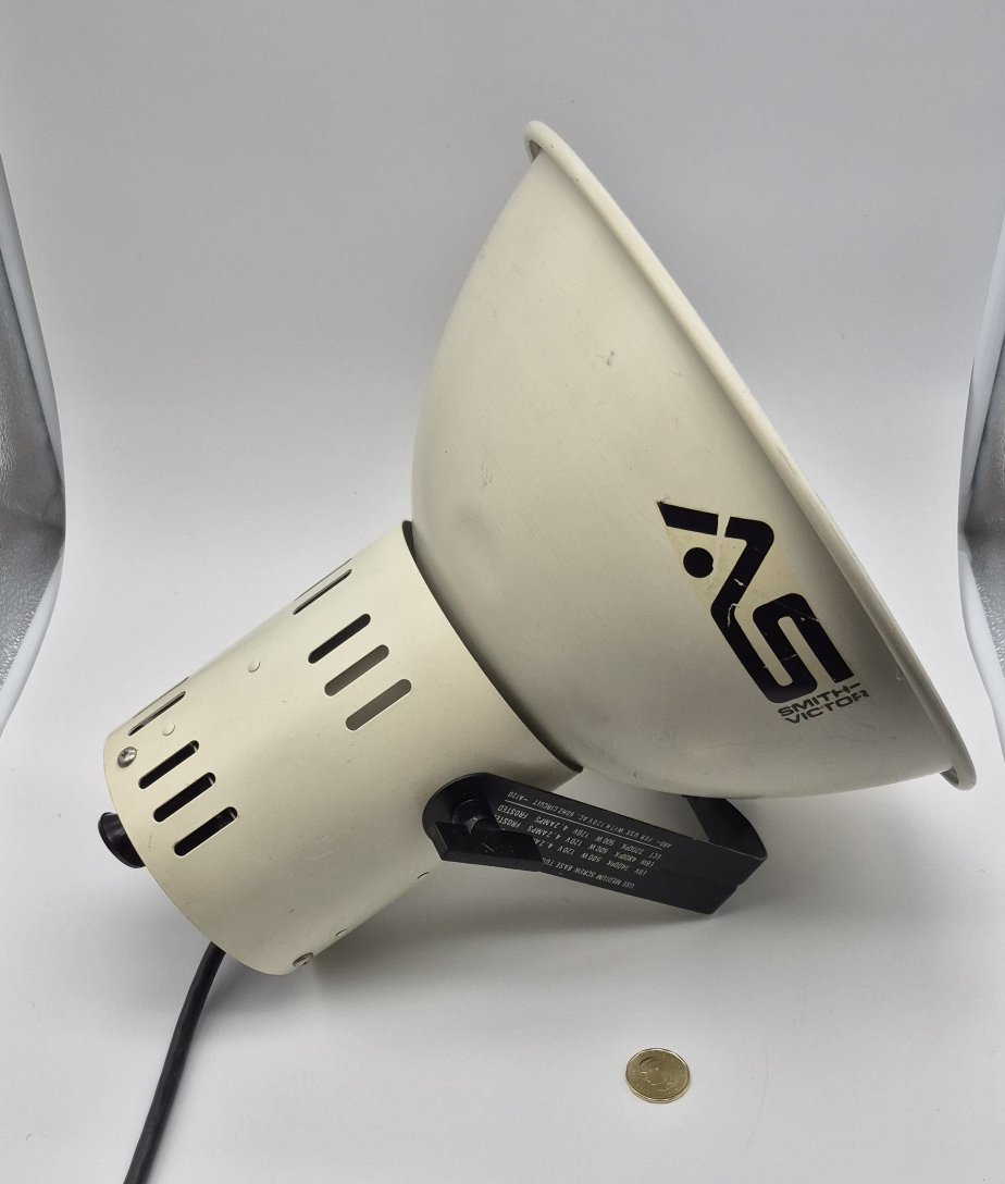 Selling a Smith Victor A120 photographic light in great condition. It's perfect for studio or on-location shoots. The light uses a medium screw base tungsten lamp type: 100W, 150W, or 250W. It has an Ontario Hydro electrical approval sticker.