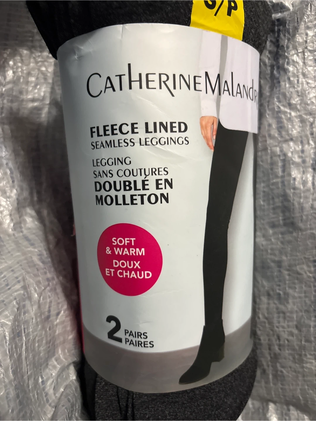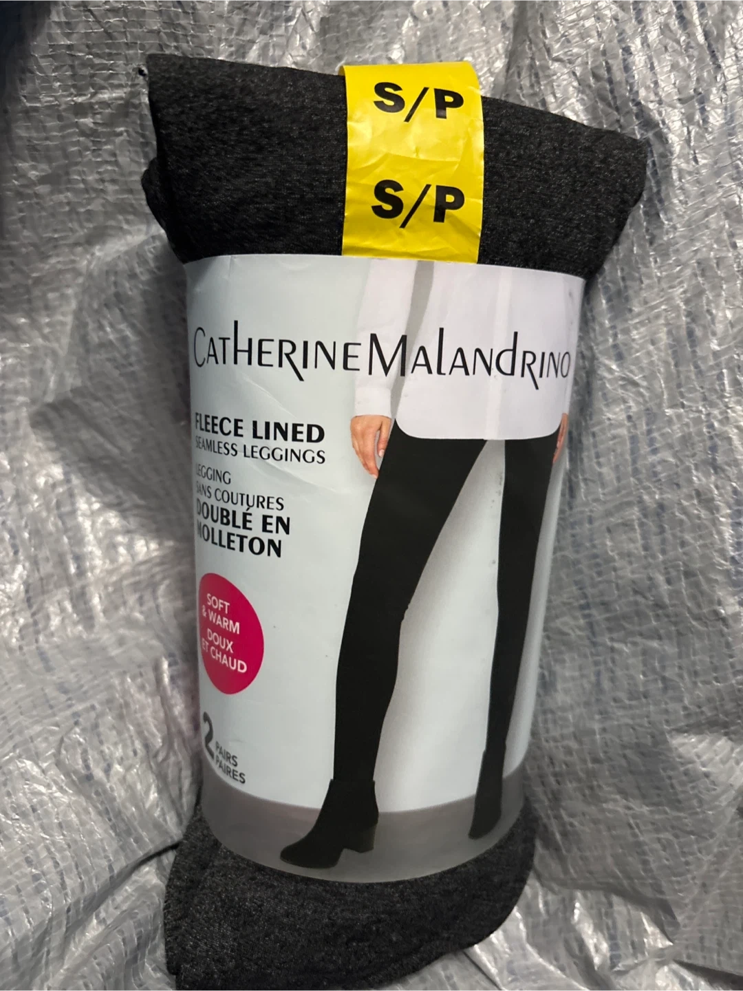 Catherine Malandrino fleece lined seamless leggings in size S/P. They are black and charcoal made of 50% polyester, 45% nylon, and 5% spandex. These leggings are soft and warm for the colder months!