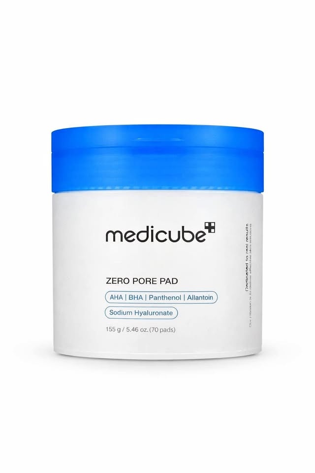 Medicube zero pore pads are dual-textured facial pads designed to help minimize the appearance of pores and improve skin texture. They contain salicylic acid (BHA) and other exfoliating ingredients that help remove dead skin cells, excess sebum, and impurities, making them effective for tackling blackheads and whiteheads.
