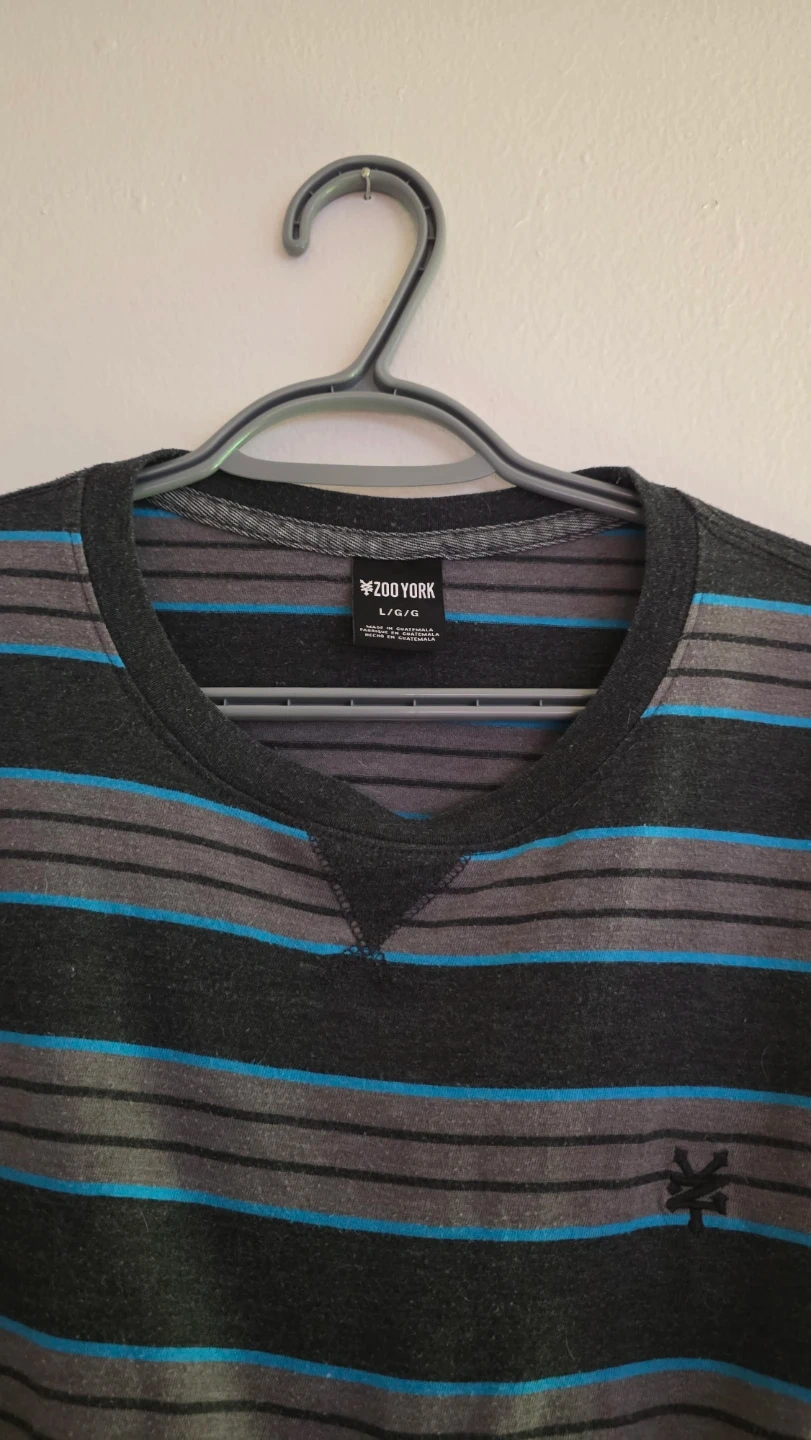 Zoo York long sleeve shirt with grey and blue stripes. Size L. It's made of a comfortable fabric blend.