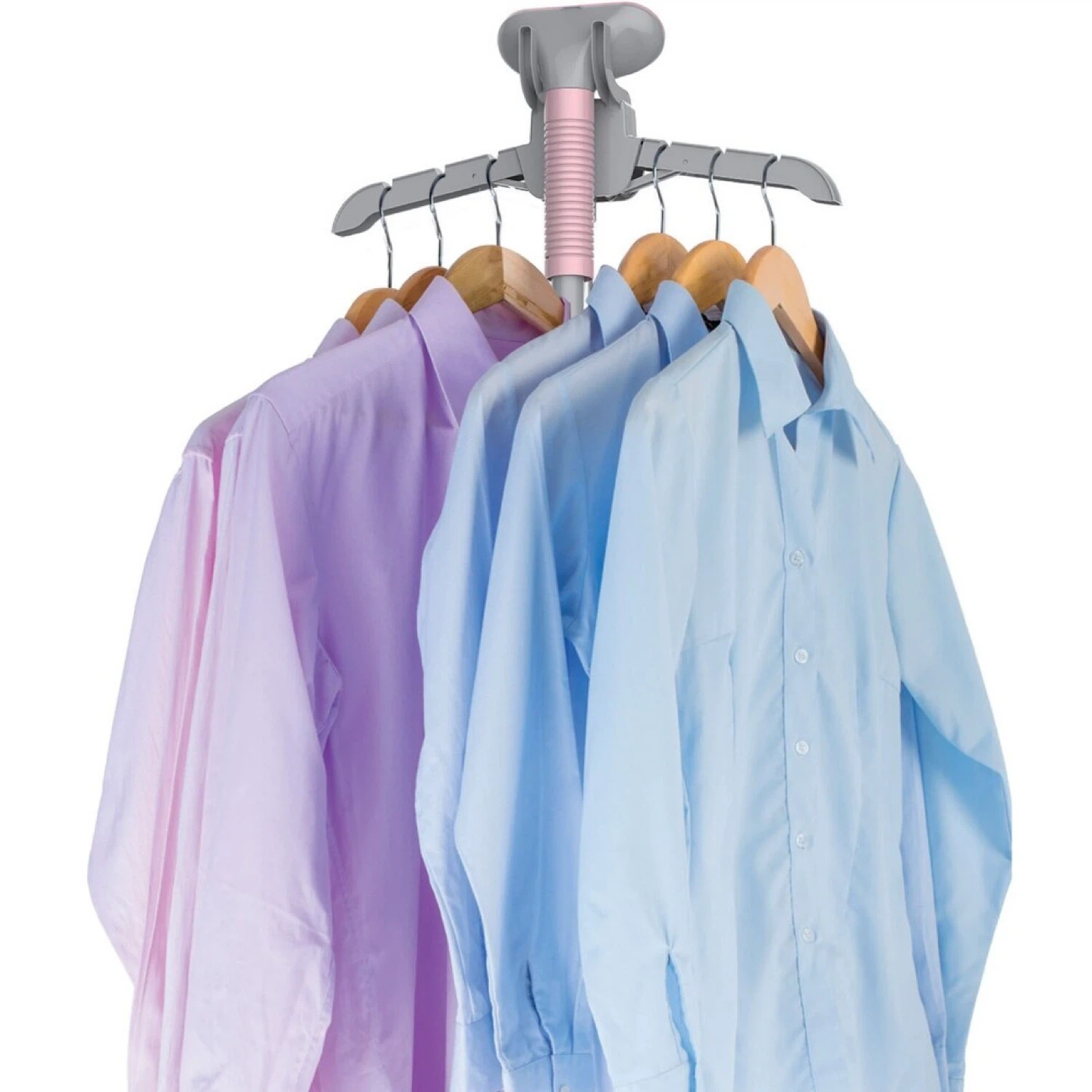 360 degrees folding adjustable hanger which extends to perfectly fit your clothes and folds up for easy storage.
