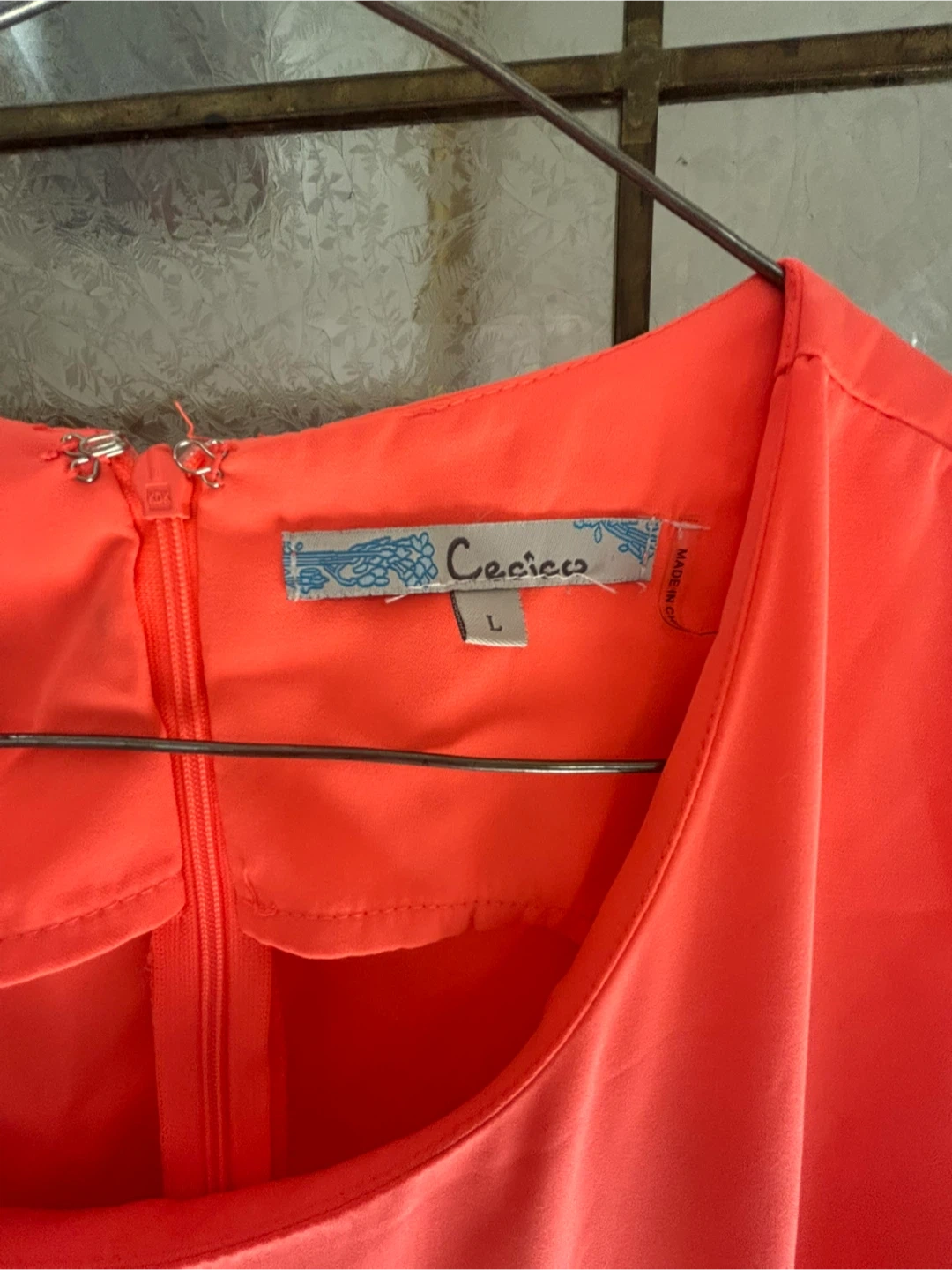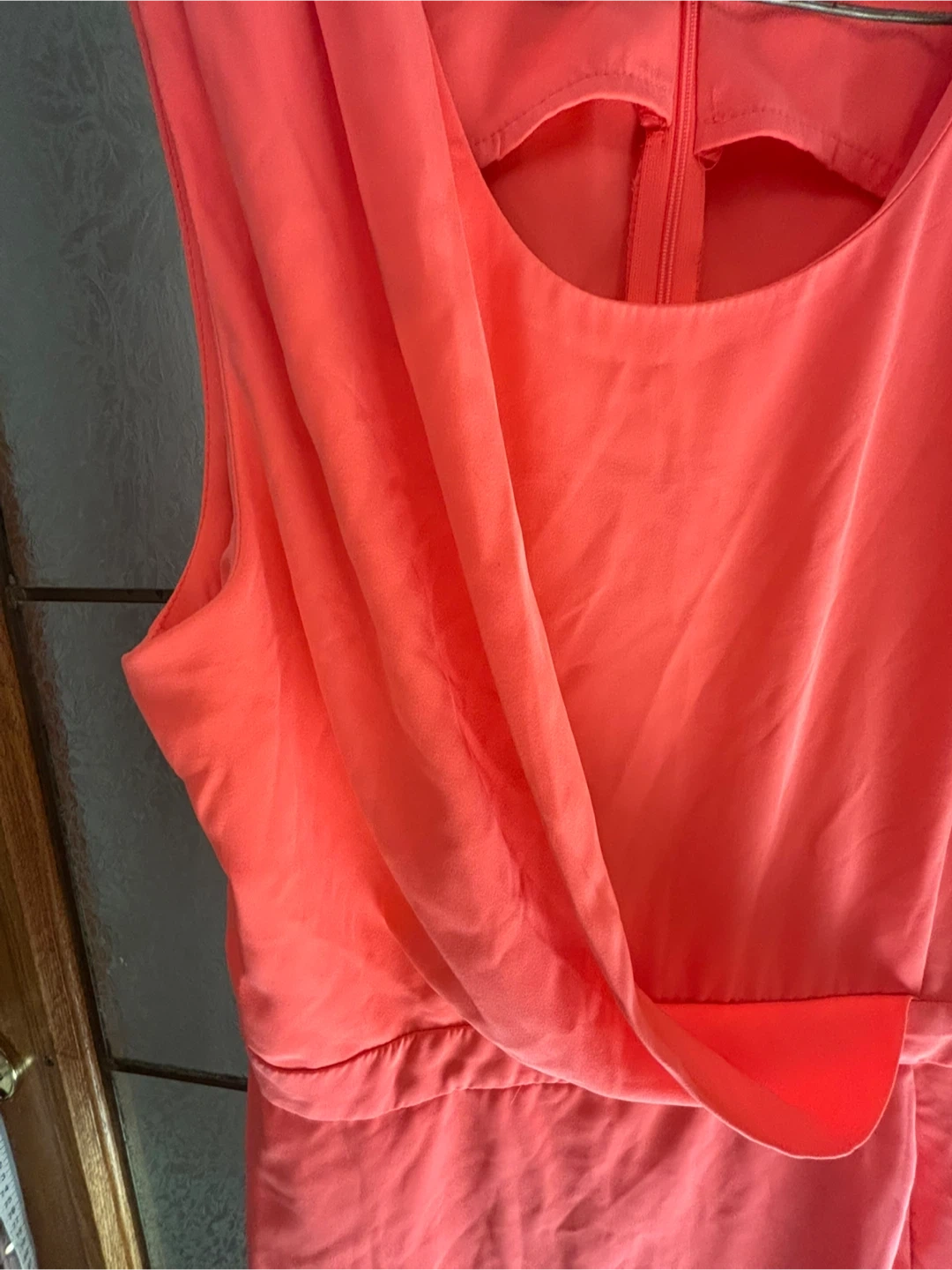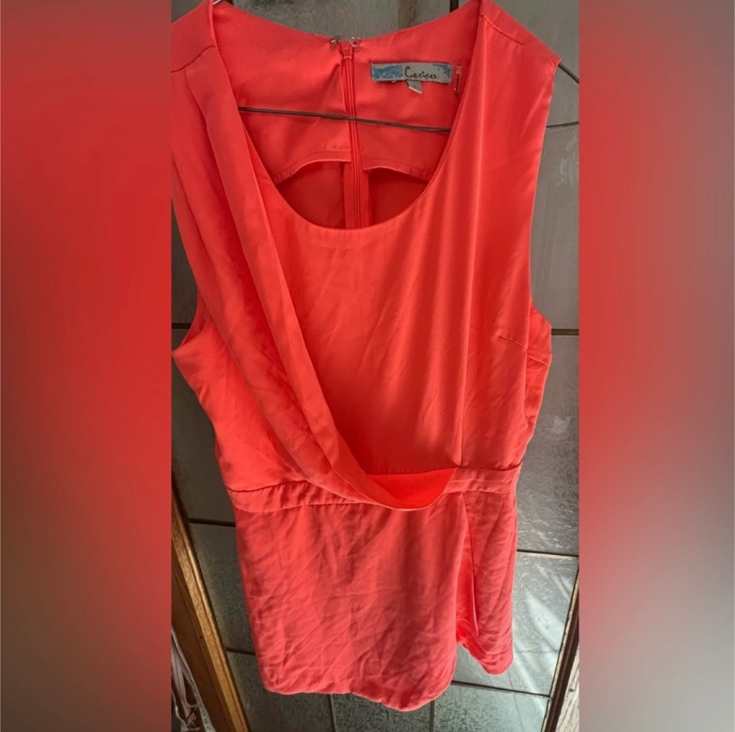 Striking orange romper by Cecico. Features a sleek back zipper and a wrap design in front.