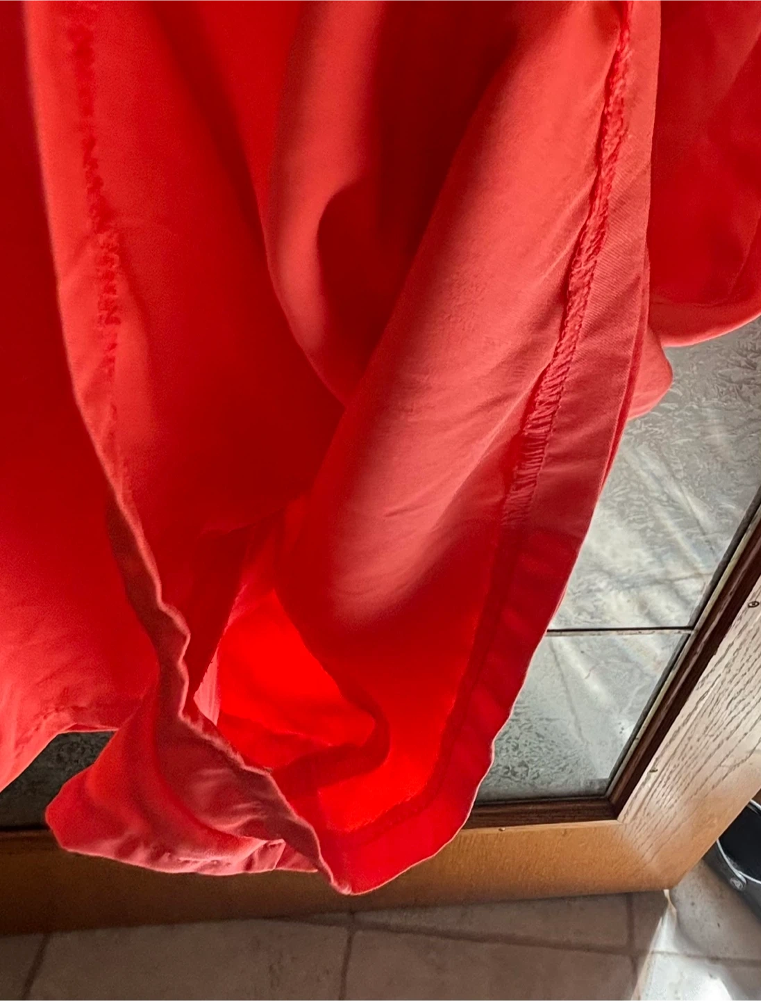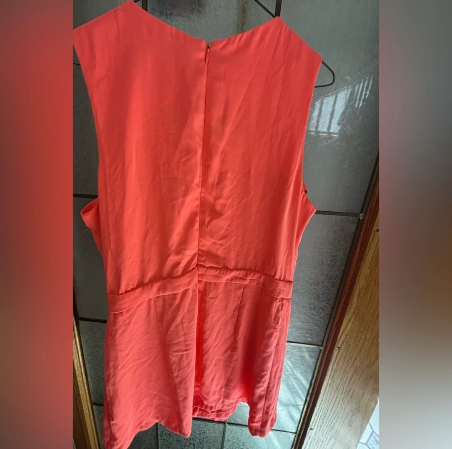 Striking orange romper by Cecico. Features a sleek back zipper and a wrap design in front.