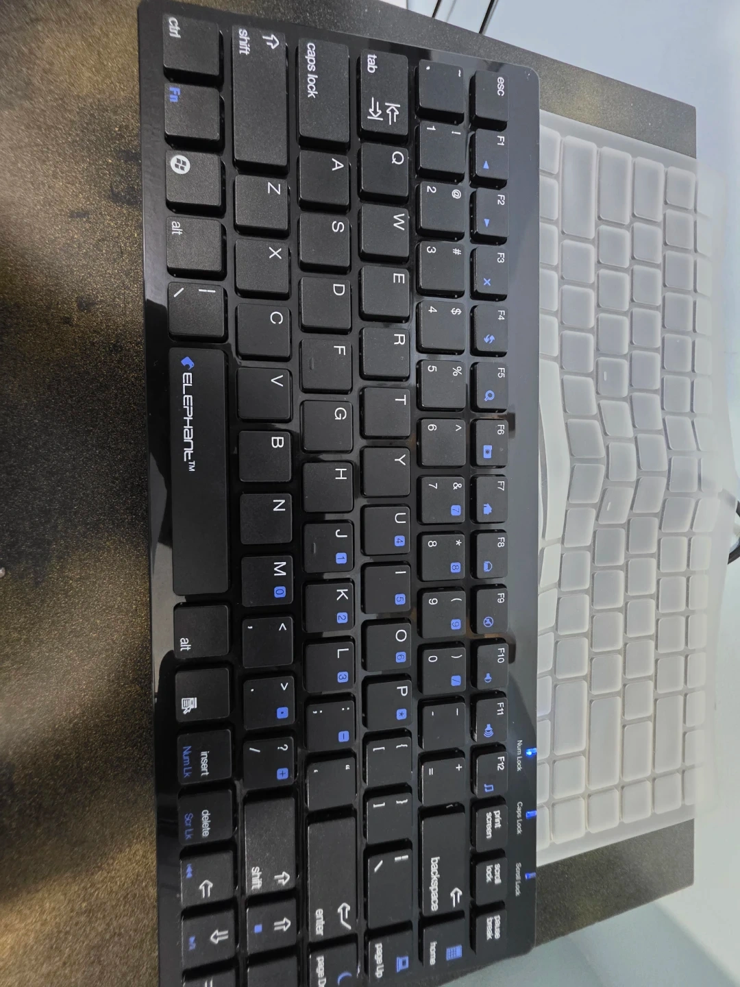 This is an ELEPHAS wireless mini keyboard. It's a compact and portable keyboard. It has a QWERTY layout with blue accented keys.