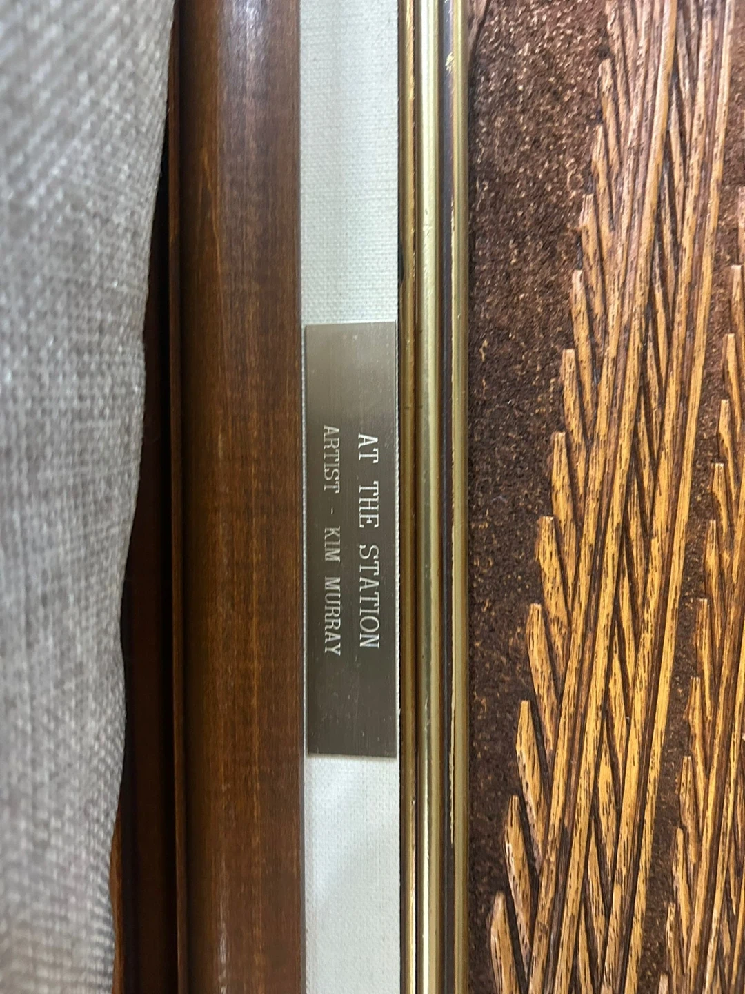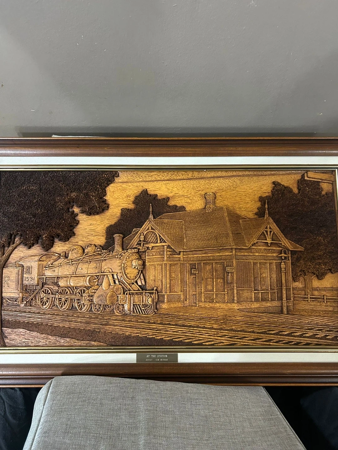 Framed Wood Carving "At The Station" by Kim Murray