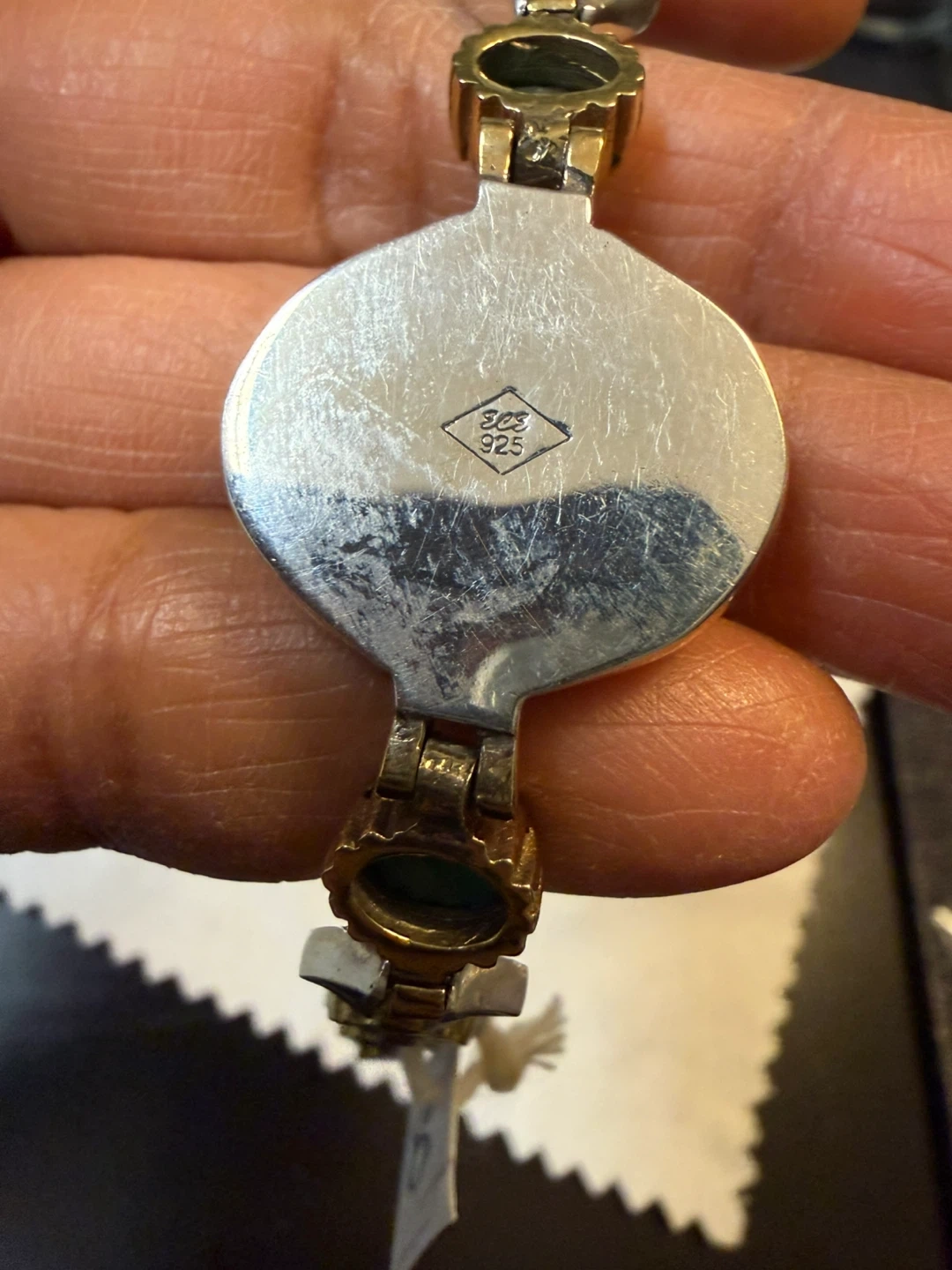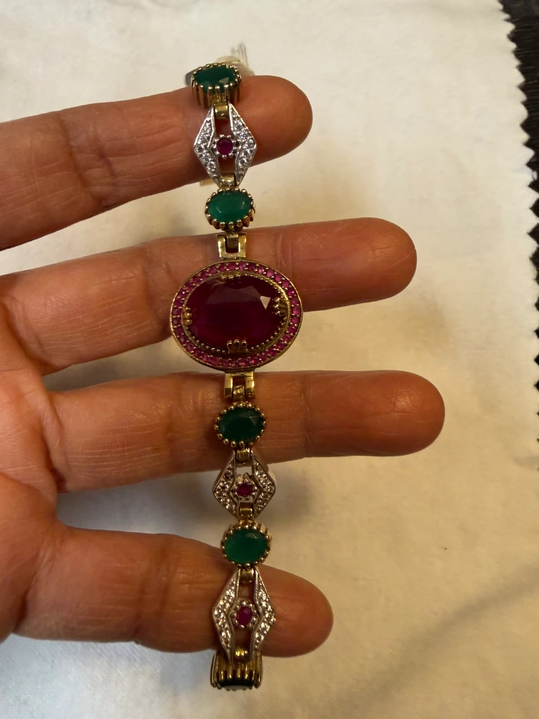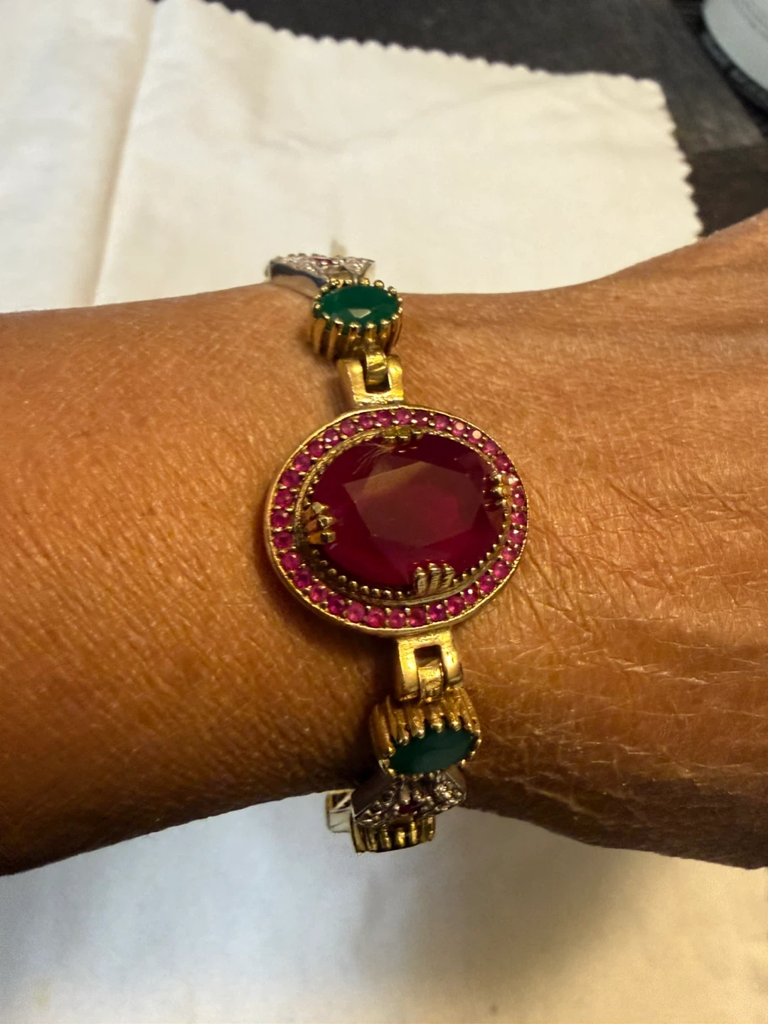 925 stamped with copper 6” Bracelet with Green and Red Stones