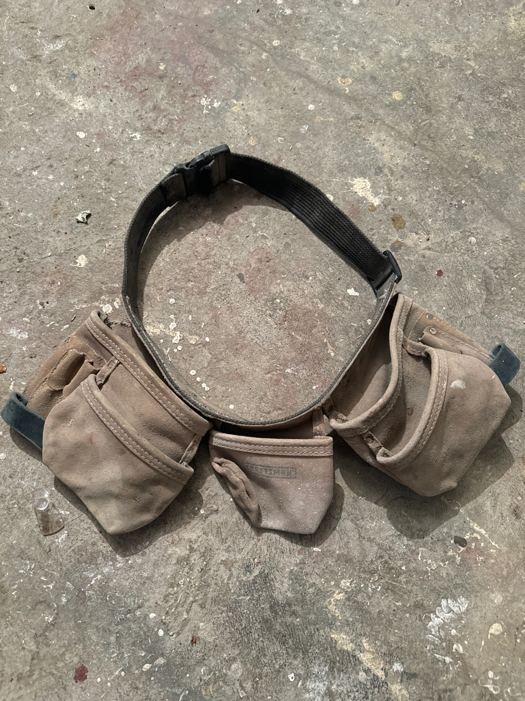 This is a Craftsman tool belt made from suede leather. It features multiple pockets for organizing tools. The adjustable belt ensures a comfortable fit.