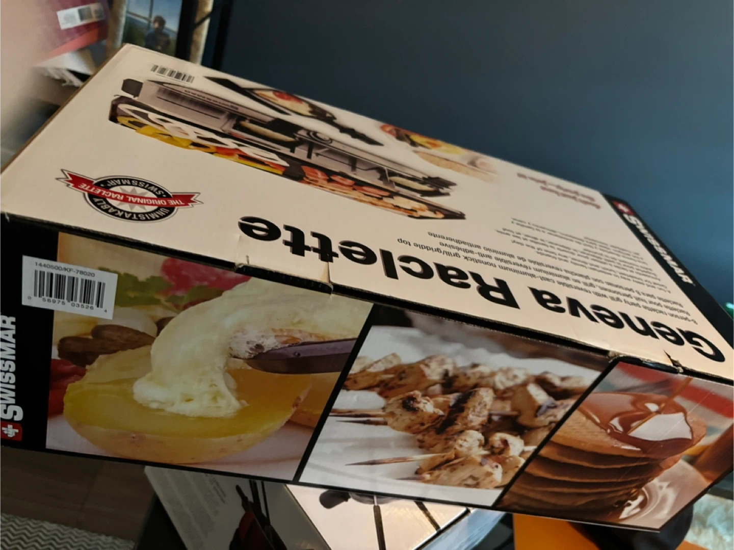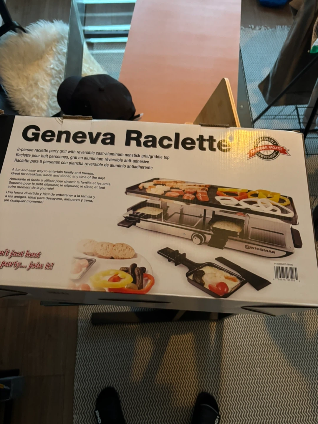 Selling a brand new Swissmar Geneva Raclette party grill! It's an 8-person raclette party grill with a reversible cast-aluminum nonstick grill/griddle top. Perfect for entertaining friends and family with a fun and easy way to enjoy a meal