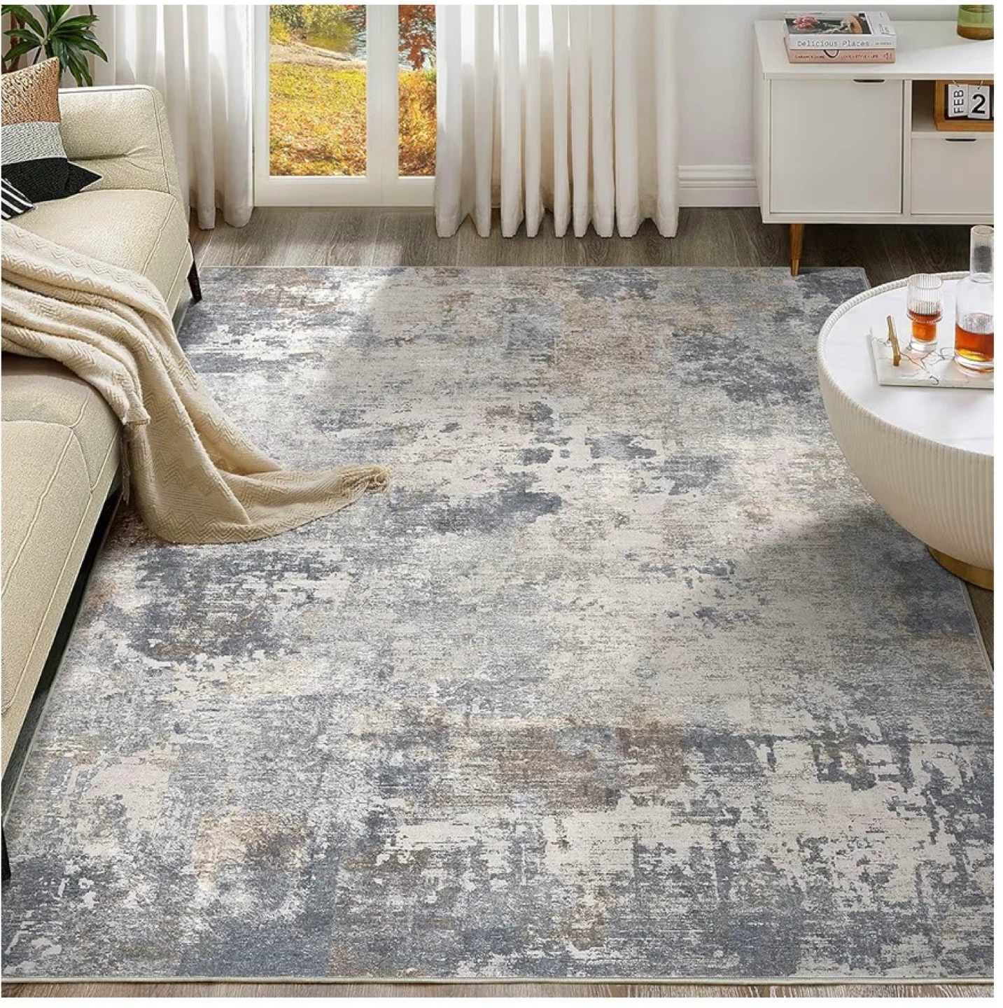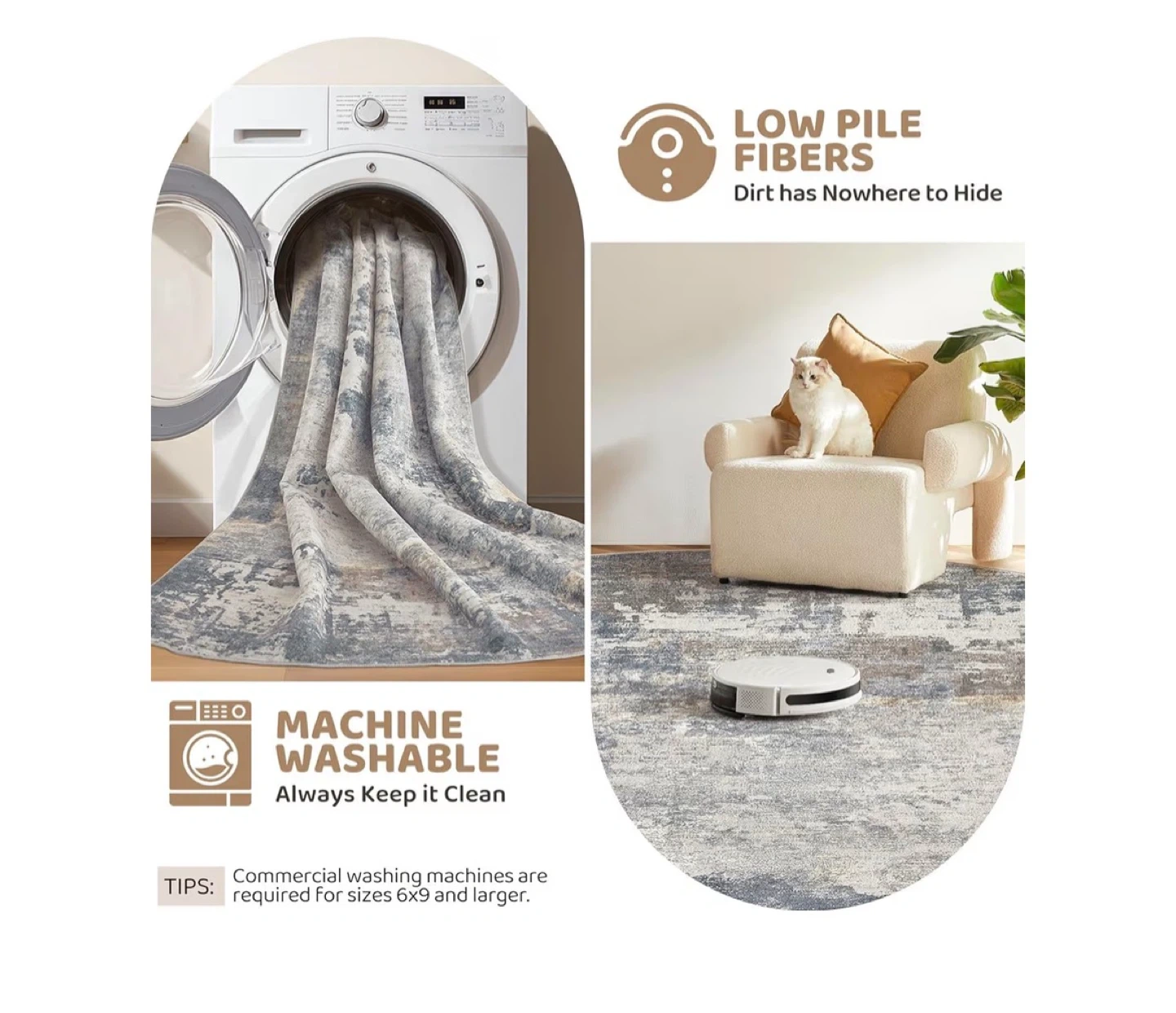 Add some style to your living space with this blue grey area rug! It's sized at 9' x 12' and has low pile fibers, so dirt has nowhere to hide. Plus, it's machine washable, making it easy to keep clean