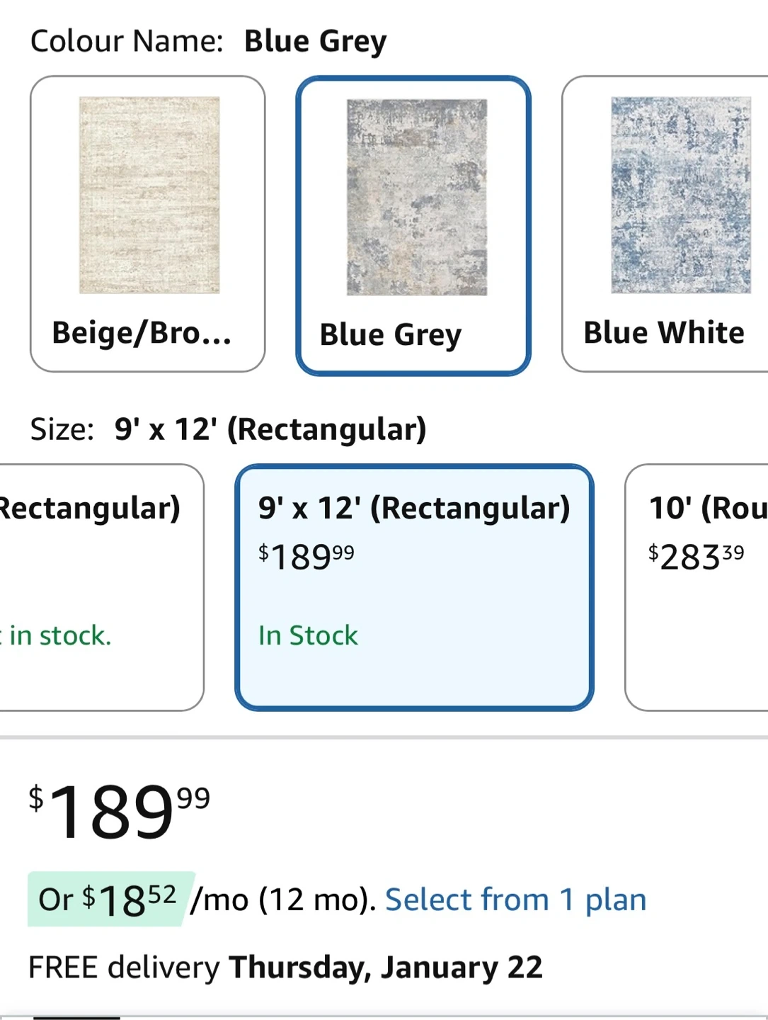 Blue Grey Area Rug - 9' x 12'