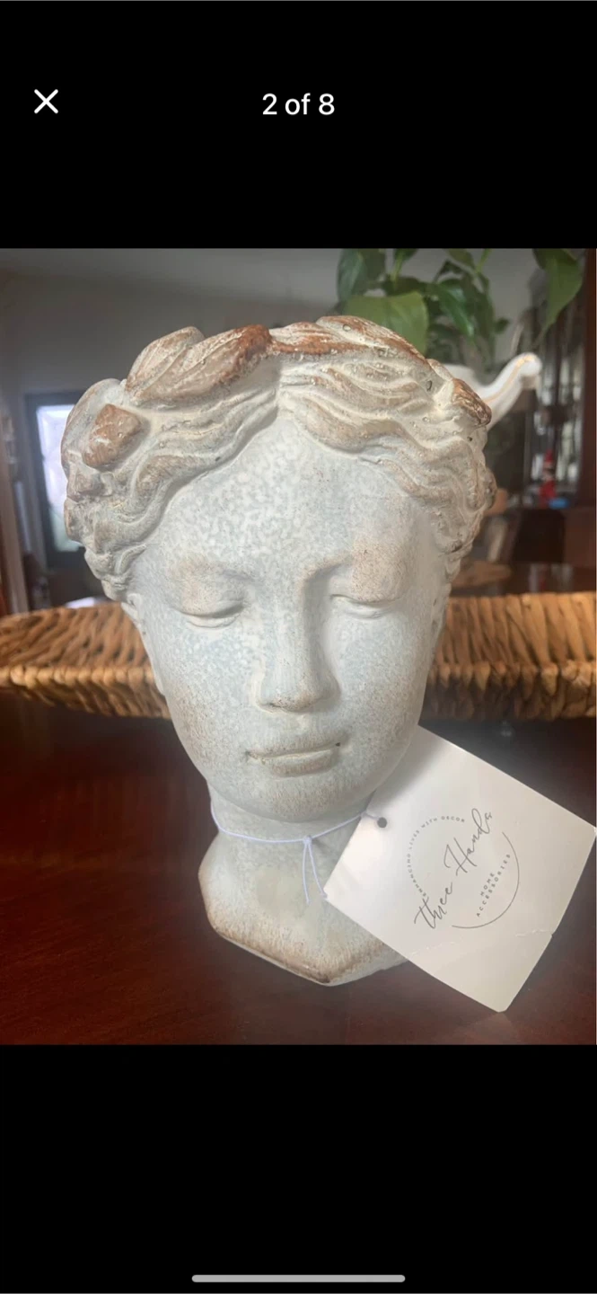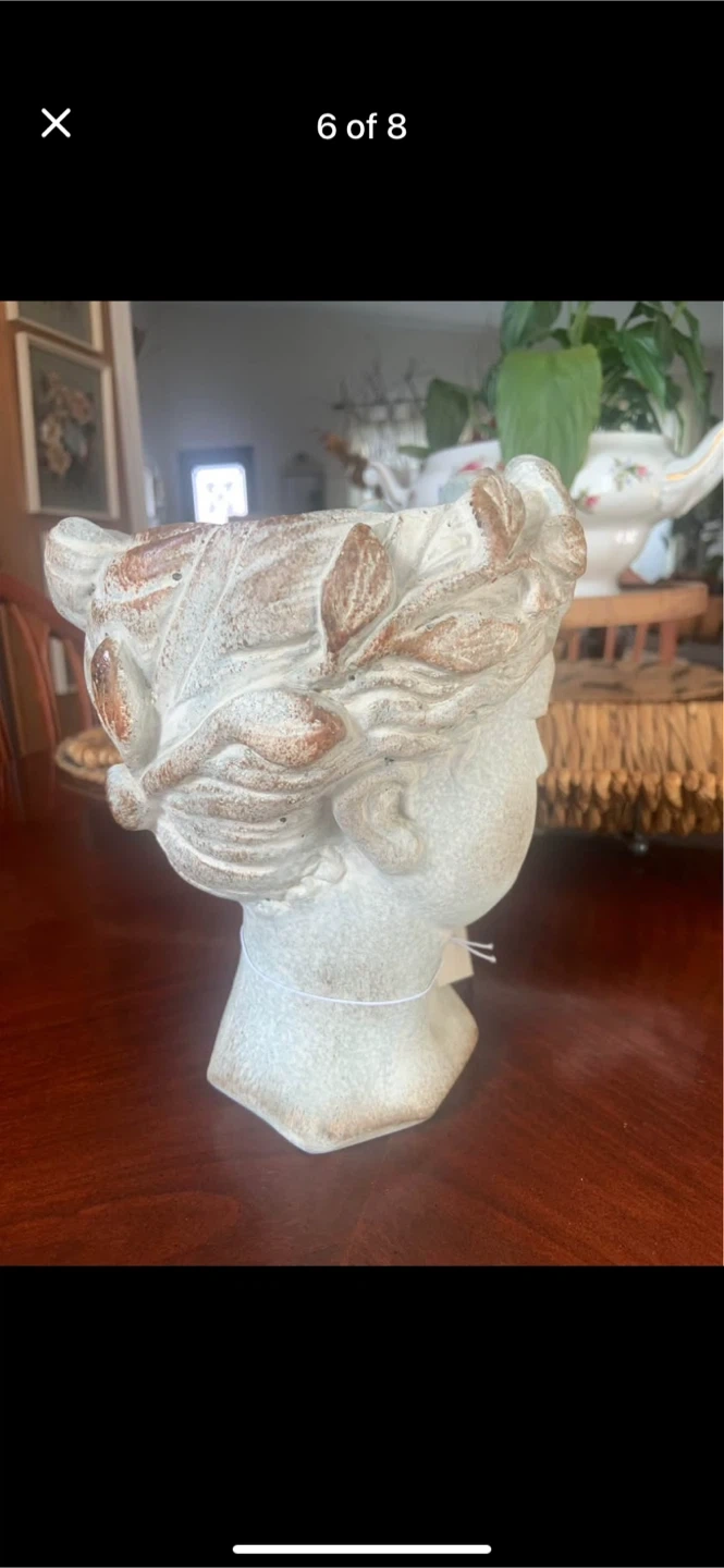 •’ GRECIAN CEMENT GODDESS WIMAN HEAD PLANTER ‘