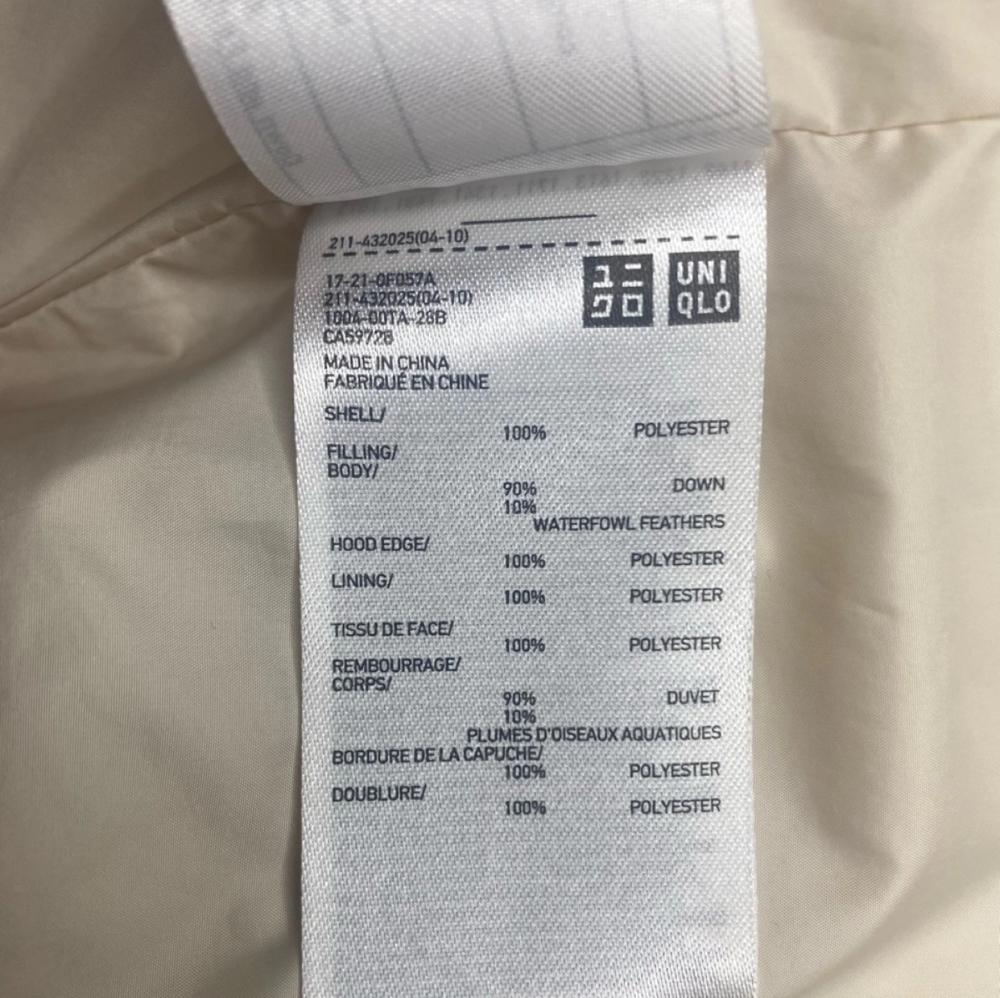 UNIQLO Off-White Seamless Down Parka
