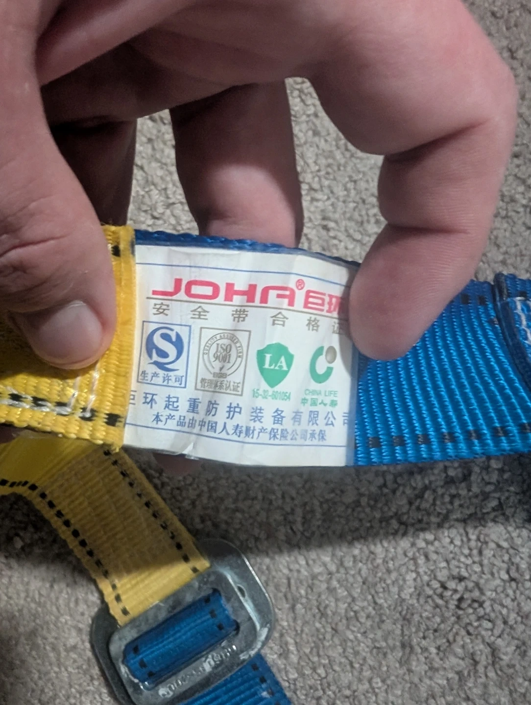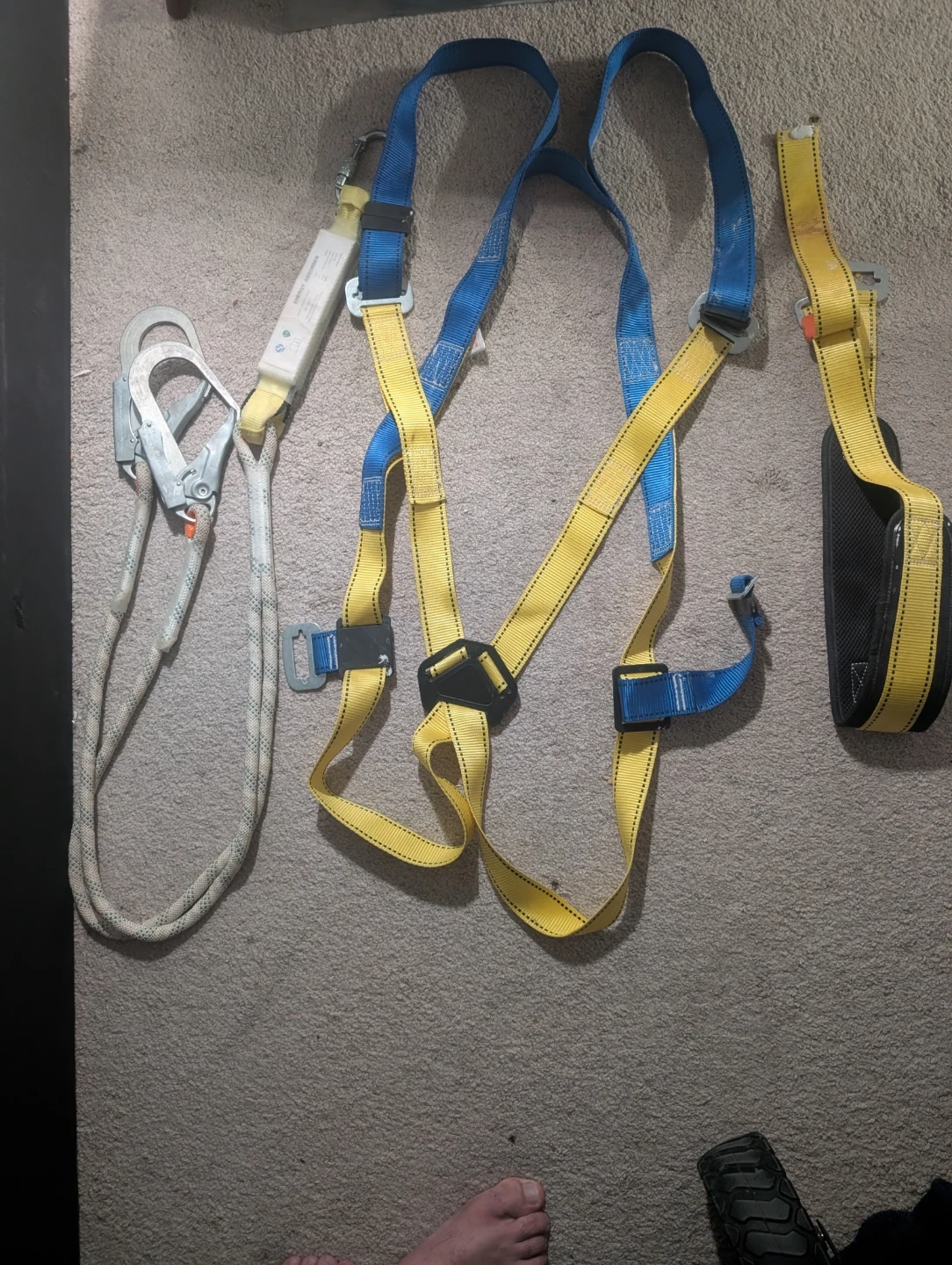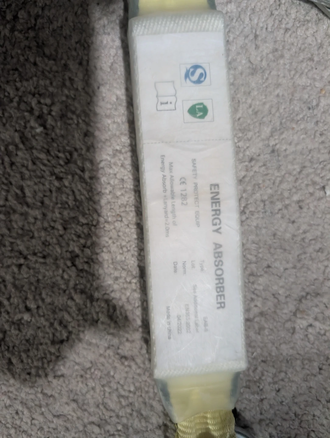 This is a full body safety harness with an energy absorber. It's designed for fall protection. The energy absorber has a max allowable length of 2.0m and is certified to EN353-2. He also has a support belt and travel restriction It's only been used 4 times