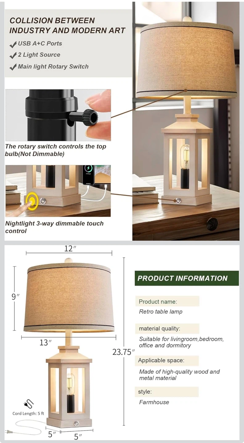 This set includes two G-Safava retro farmhouse table lamps. Each lamp features a 3-way dimmable touch control nightlight and two light sources. They're made of high-quality wood and metal material with a farmhouse style.