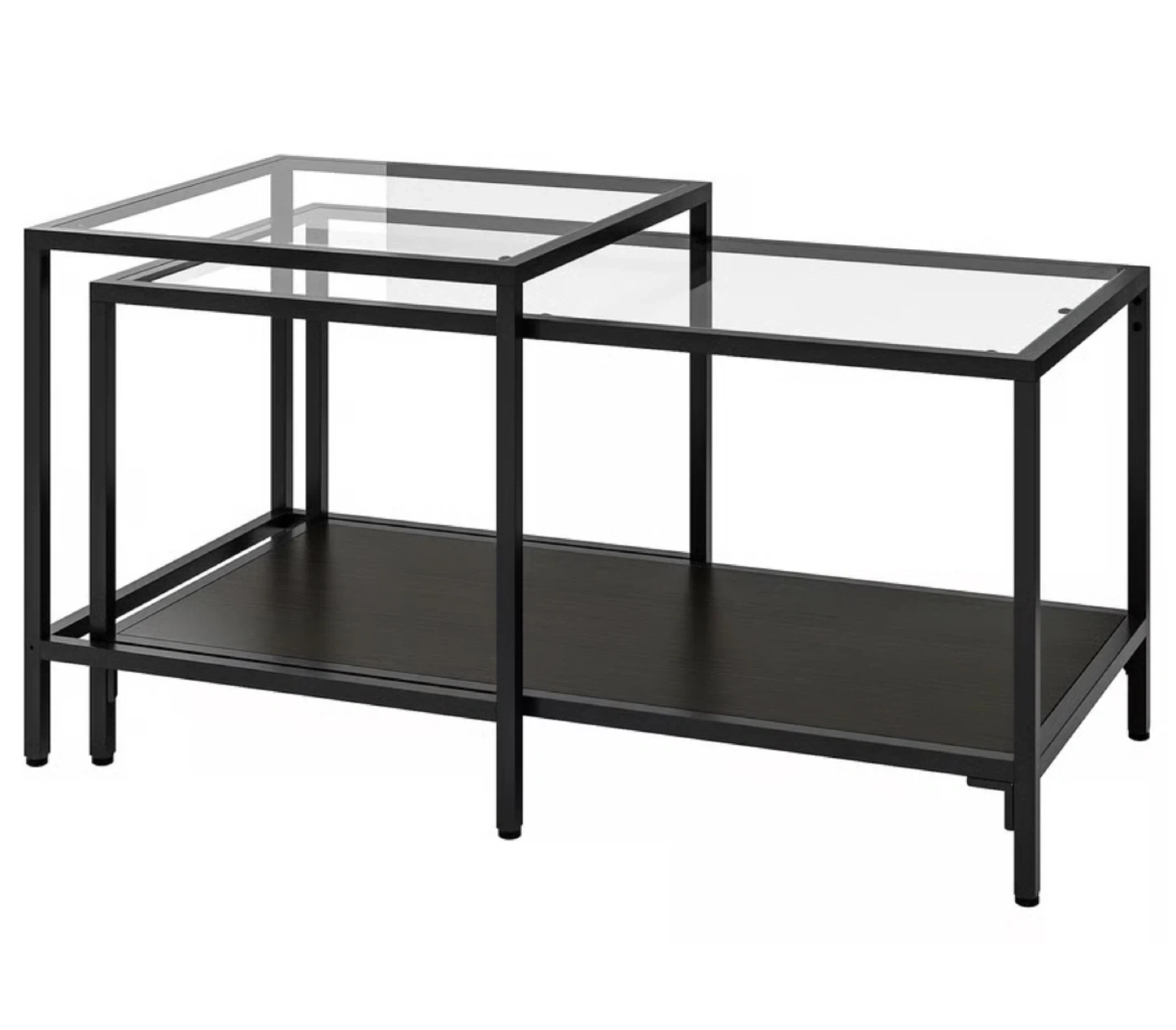 The simple and honest design of VITTSJÖ nest tables creates an open and airy expression. You can always choose to use them individually, together or slide the lower one under the higher table.