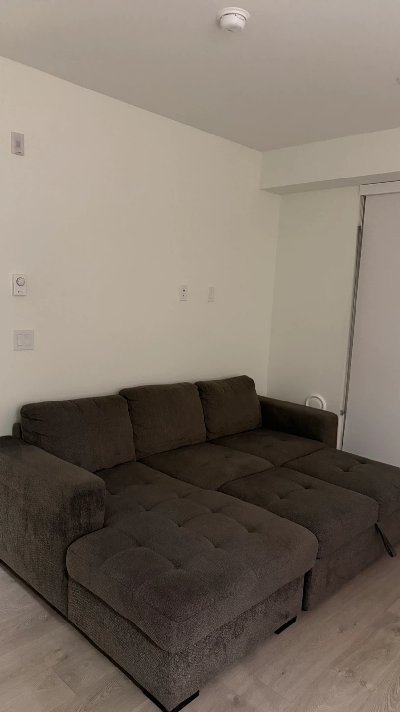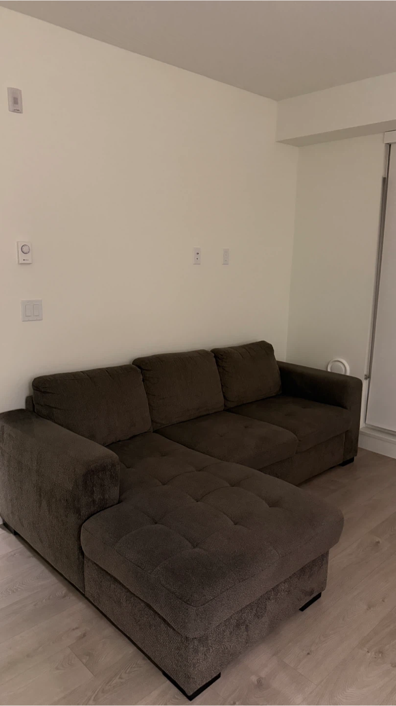 Selling a comfortable brown sectional sofa. It's in good condition and would be a great addition to any living room.