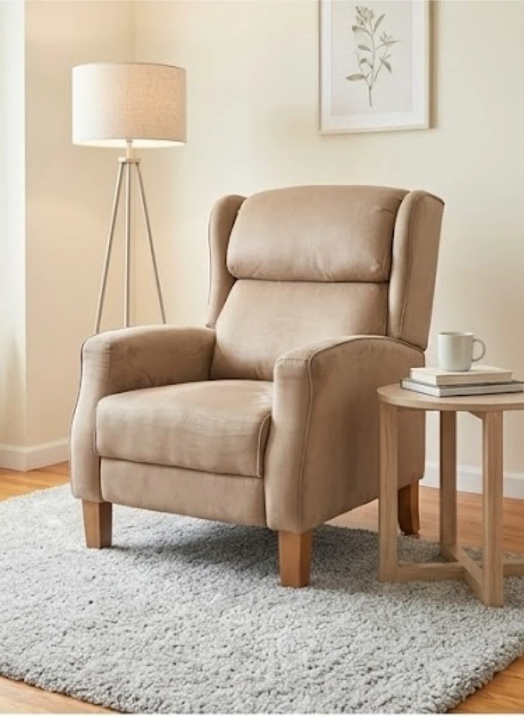 Add a touch of elegance to your home with this beautiful Beige Wingback Accent Chair. Featuring a soft, microfiber-style fabric and a modern silhouette, this chair is perfect for a reading nook, nursery, or as extra seating in your living room.