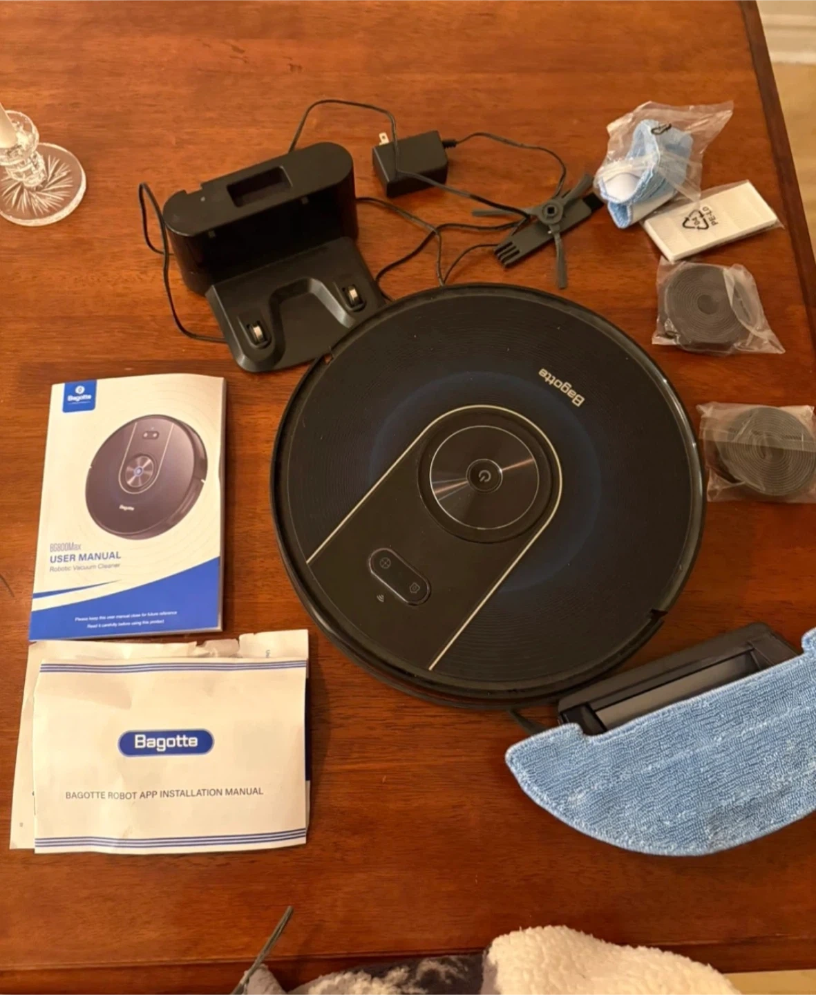 Selling a Bagotte BG800Max robot vacuum cleaner in great condition! It comes with all included components, such as the charger base and user manual, mop attachment, replacement mop cover and bristles, filter, and tracks I think to prevent it from falling down stairs. We got for about $250, used for a couple months but then we got a dog and he’s scared lol. Priced to sell.