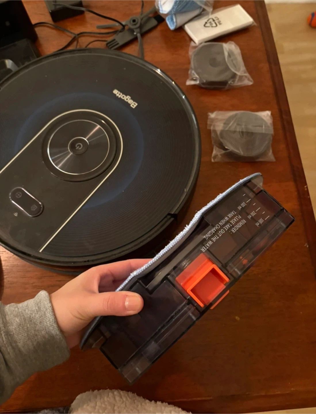 Selling a Bagotte BG800Max robot vacuum cleaner in great condition! It comes with all included components, such as the charger base and user manual, mop attachment, replacement mop cover and bristles, filter, and tracks I think to prevent it from falling down stairs. We got for about $250, used for a couple months but then we got a dog and he’s scared lol. Priced to sell.