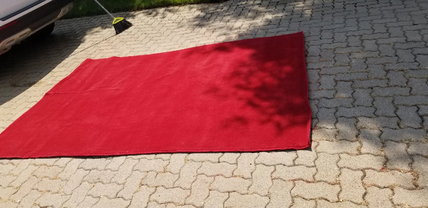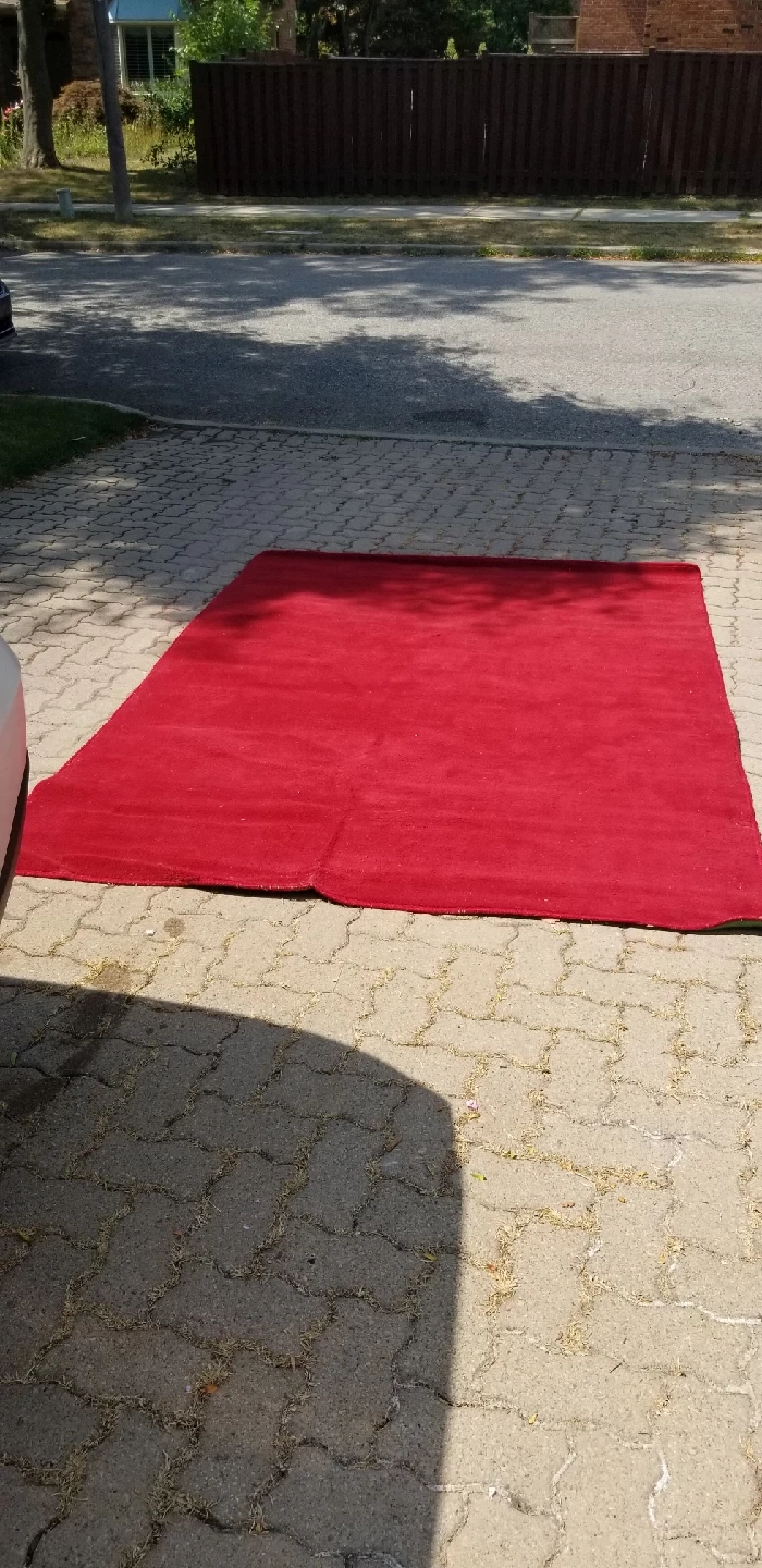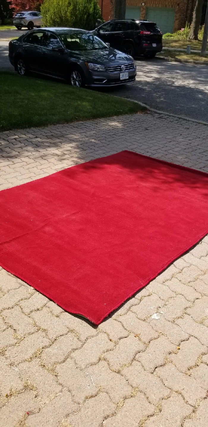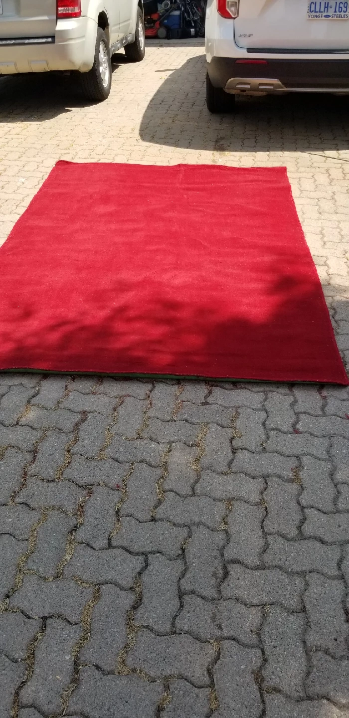 Selling a red area rug. It's in good condition and would be great for adding a pop of colour to any room