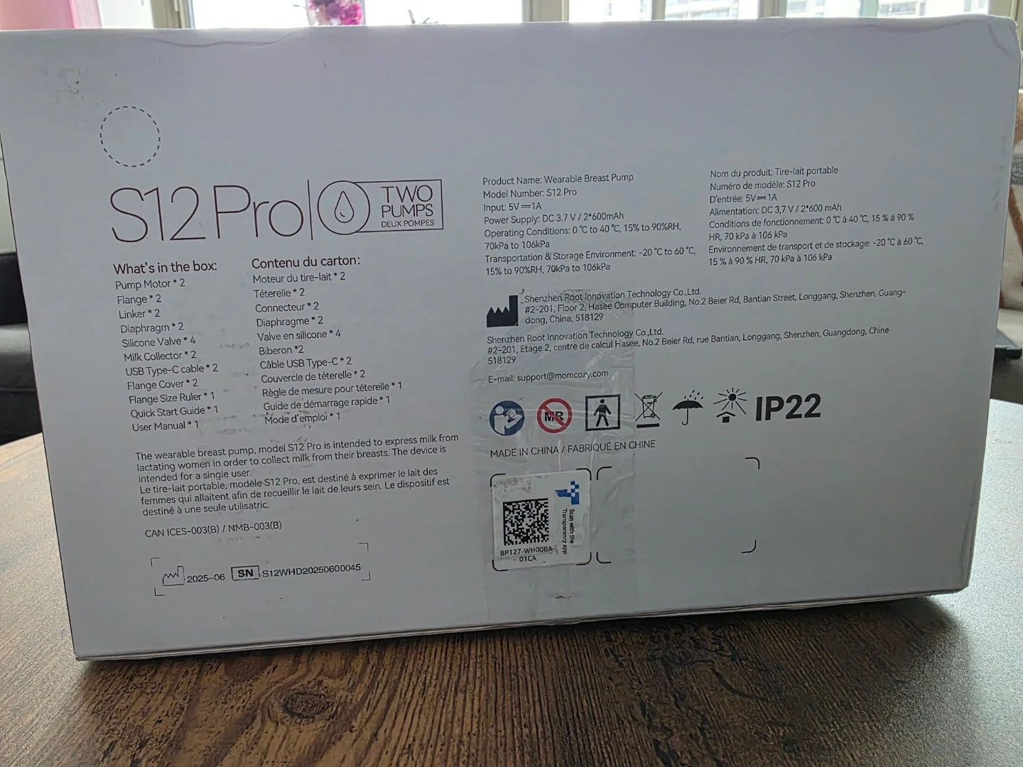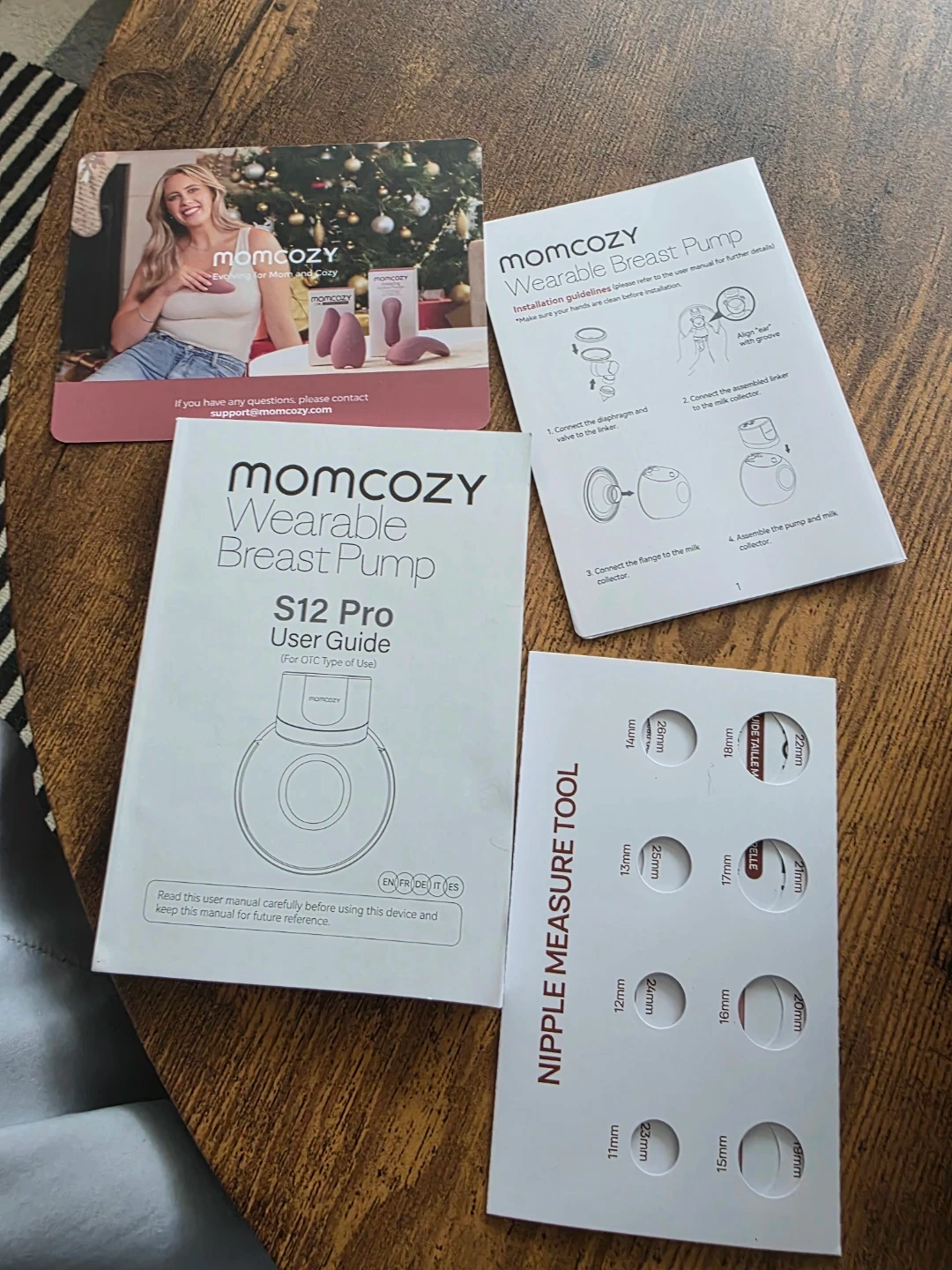 This Momcozy S12 Pro wearable breast pump is designed for discreet and portable use. It includes two pumps, charging cables, and a nipple measurement tool. This device offers adjustable settings for pumping sessions. New