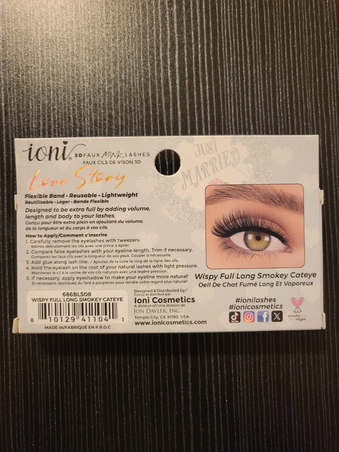 Ioni 3D Faux Mink Lashes in the 'Wispy Full Long Smokey Cateye style. These lashes are 100% hand-made and designed to be flexible. They offer reusable and lightweight wear for added volume and body.