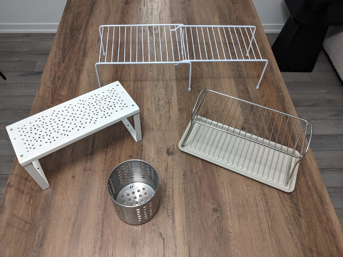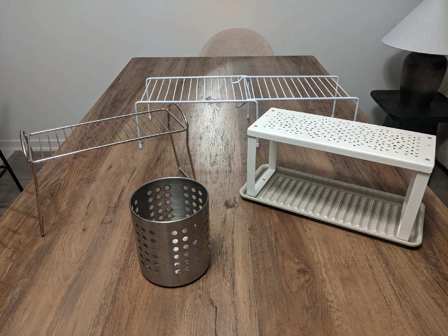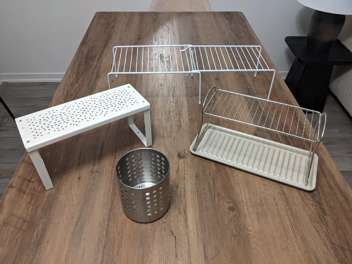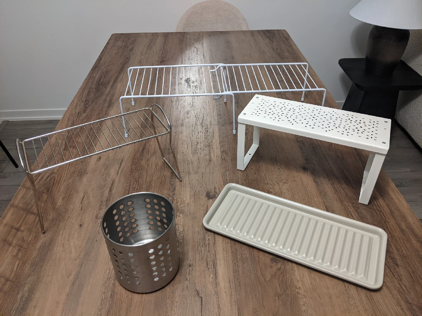 Organize your kitchen with this versatile lot of kitchen organization accessories. These items can help maximize space and keep your countertops tidy.