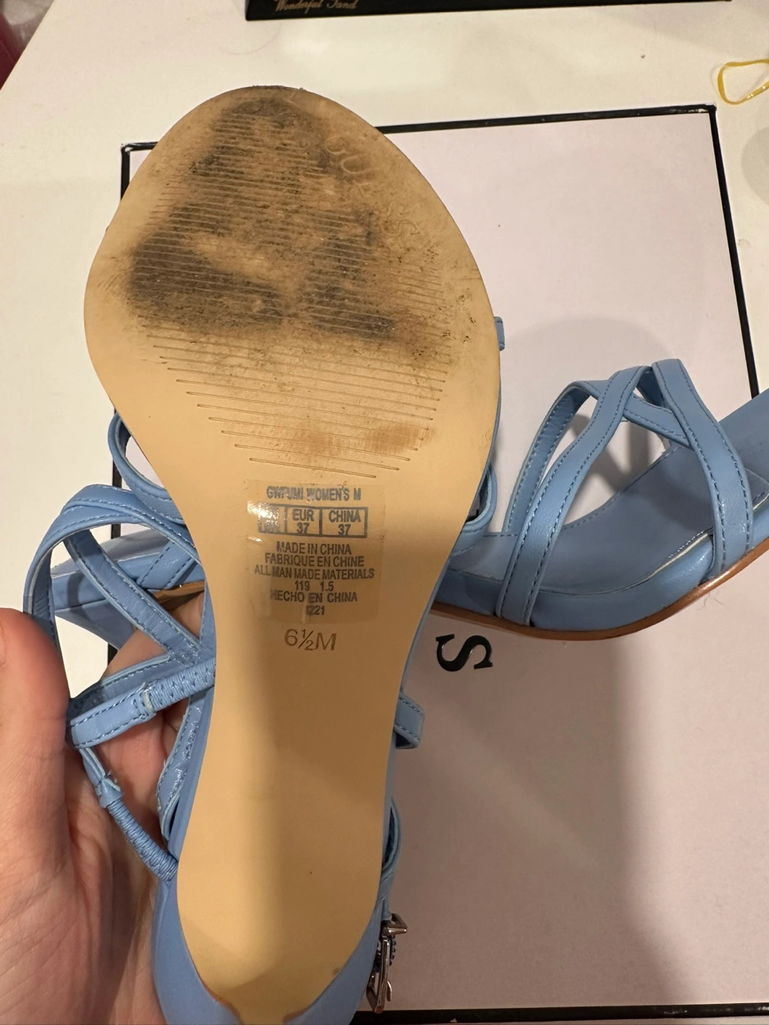 Beautiful light blue Guess heels. Size 6.5M. Ankle strap closure. Stiletto heels. Worn once for my graduation