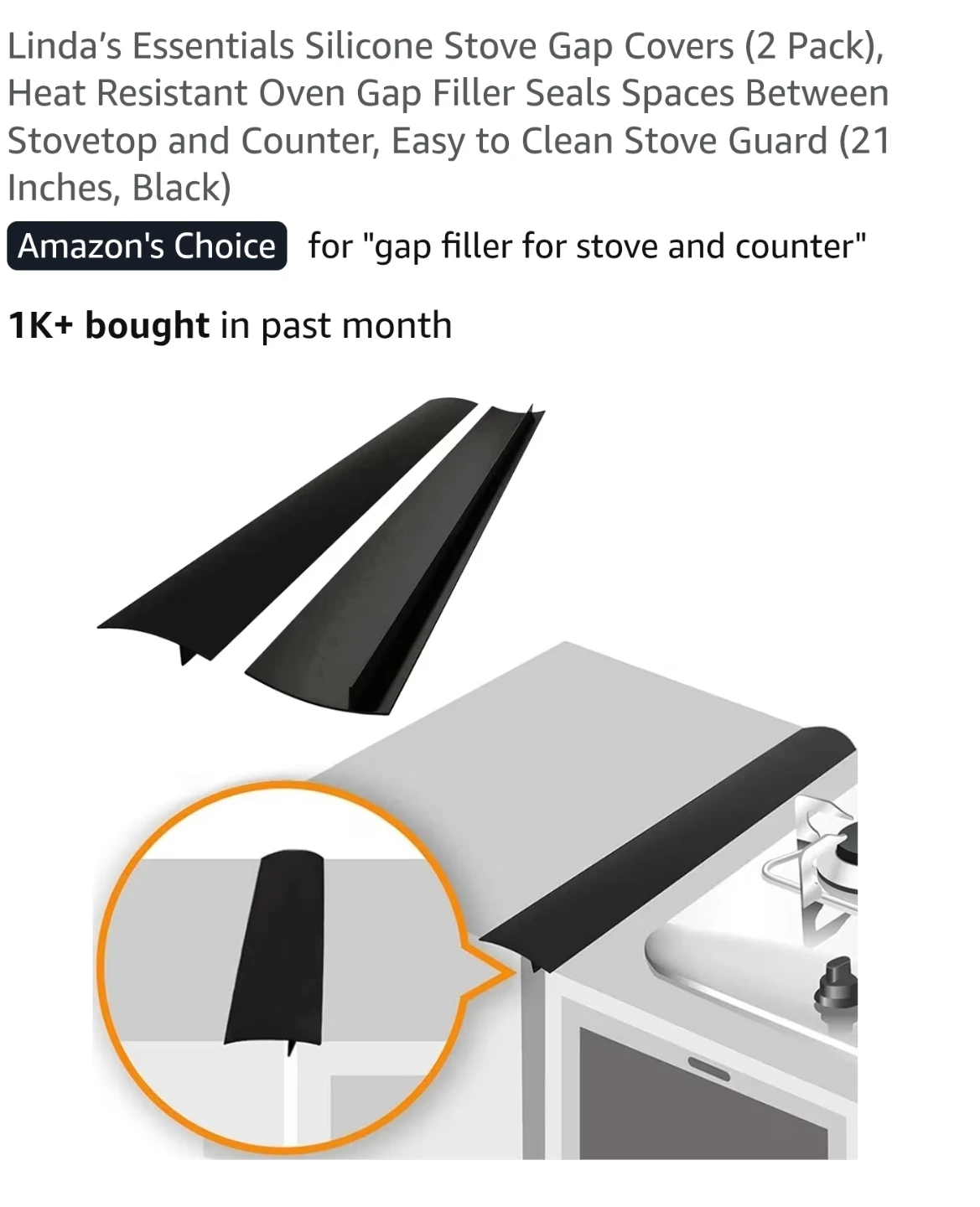 These are Essentials silicone stove gap covers, perfect for sealing spaces between your stovetop and counter. They're heat resistant and easy to clean. Each cover is 21 inches long and black.