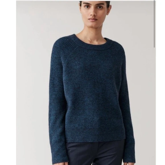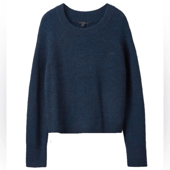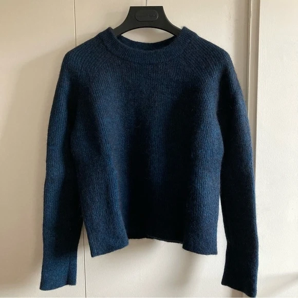 Super soft fluffy knit dark blue sweater in perfect condition. Knit is a mix of navy/black yarn with light blue peeking through (refer to photos). Straight cut, labeled XS. Would also work fitted for S.