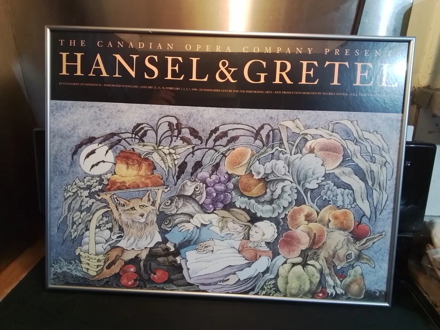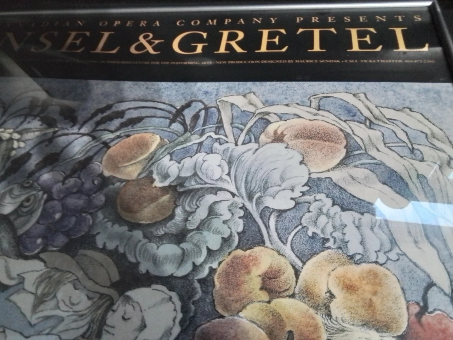 This poster advertises The Canadian Opera Company's production of Hansel & Gretel, performed in English. It features artwork by Maurice Sendak and was displayed at the Hummingbird Centre for the Performing Arts in January and February 1998. A great piece for opera fans or collectors of theatrical memorabilia!