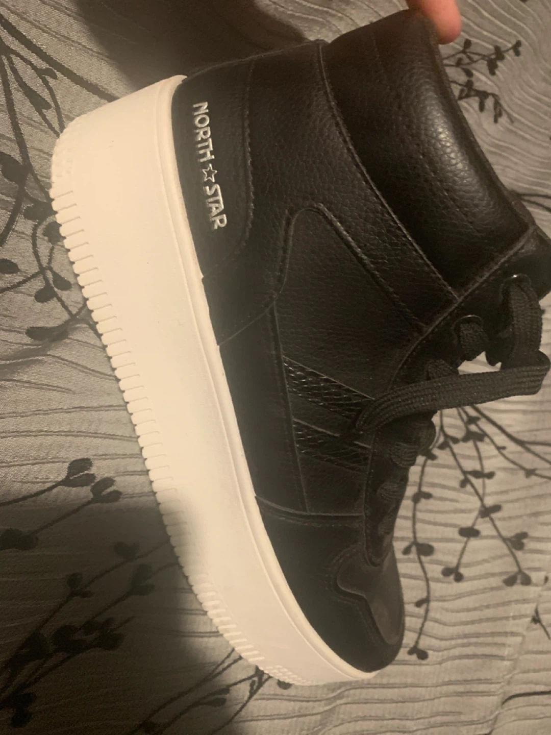 These black high-top sneakers are from North Star. They feature a chunky white sole and black laces. Perfect for everyday wear!